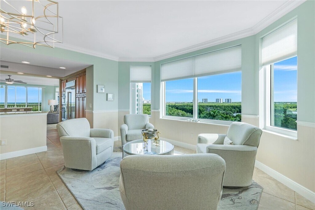 OPEN FOR 2026 SEASON!! Well furnished,with a contemporary,clean style,this 4th floor residence is in one of Naples most luxurious high rises - The Phoenician within The Dunes Grand Preserve. This 3 bedroom/ 3 bath residence features over 2800 sq. ft. of living space. The Spacious and Open floor-plan offers the ideal space to entertain family and friends. The oversized Lanai offers Panoramic and Tropical views of the Back Bay,and Beautiful Sunsets. The Living Room has been furnished with a neutral-toned,upholstered comfortable couch,and 2 side chairs,which gives comfortable seating,Large Flat-Screened Television/Entertainment center. The Separate Sitting Area offers 4 comfortable chairs,conversation table,and bar area. The well-equipped Kitchen features upgraded raised panel cabinetry,quality appliances,granite counter tops,and bar area,with bar stools. The Dining Room has a rich wood rectangular table and seating for six. The Master Suite offers a King-Size bed,set in a beautiful bed frame,quality linens,TV,loveseat,matching end table/lamps,Flat-Screen TV,walk-in closet,and private bath with a walk-in shower,and separate tub. The Guest Bedroom has a King-Size bed,quality linens,walk-in closet,and private bath with a walk-in shower. The Third Bedroom has a King-Size bed,quality linens,and a bath with a walk-in shower. The Lanai features a table and chairs,expansive,chocolate-colored,outdoor wicker couch,loveseat,and chair --- Perfect Place to have friends and family relax,and to enjoy a beautiful sunset. Seasonal Guests will enjoy all of the wonderful amenities that the Dunes has to offer including: a heated pool and spa at the building,large heated community pool,on-site restaurant,exercise room,tennis courts with pro-shop and gated entry. A private beach club membership to the Floridian Club is available offering a beachfront casual clubhouse with pool,food and drink service,beach chairs and shuttle service to and from the Dunes.