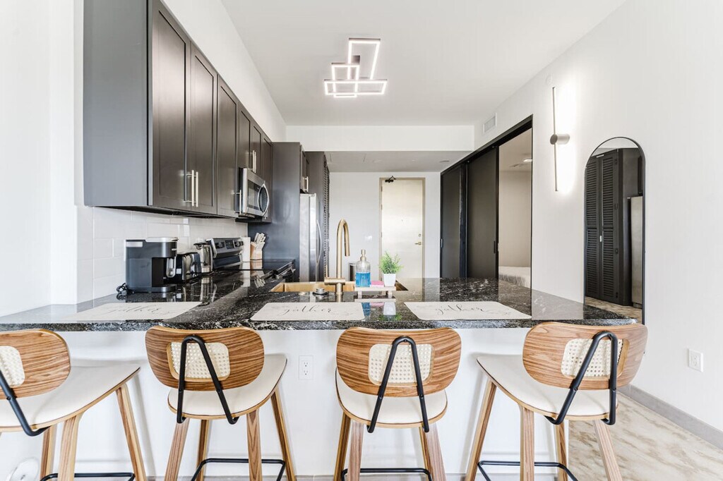 The advertised rate of $7,565/month is the lowest available price, based on a 30 day(s) stay with a move-in date of May 3, 2026. Rates vary depending on the duration of stay, season, and other parameters. For exact pricing and additional pricing components, please visit our website and enter your desired move-in and move-out dates. The rate is applicable when billed upfront; it can be higher if billed in multiple payments. Feel at home in this stylish 2-bedroom apartment that hosts up to 6 guests. This clean and modern apartment is built for an exceptional stay. Thoughtfully designed for comfort and effortless stays, the space features a bright and inviting living room with a cozy sofa bed. The open layout flows into a fully equipped kitchen and dining area, ideal for both short and extended stays. The first bedroom features 2 plush queen beds, while the second bedroom offers a premium queen bed. Both bathrooms are sleek, modern, and impeccably clean, fully stocked with essential amenities. Enjoy ultra-fast Wi-Fi and smart TVs. Free on-site parking is available. Guests also enjoy complimentary access to the Dolce Hotel rooftop pool, located just 5 minutes away. This centrally located apartment is just minutes from Hard Rock Casino, Dania Pointe, the beach, and FLL Airport. Located in a secure, well-maintained building, this property delivers the perfect mix of luxury and convenience. Certain areas within the building may be restricted or reserved for residents only. [SI]