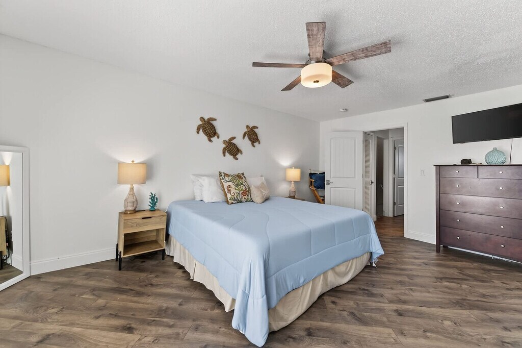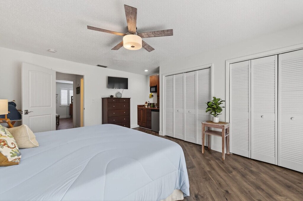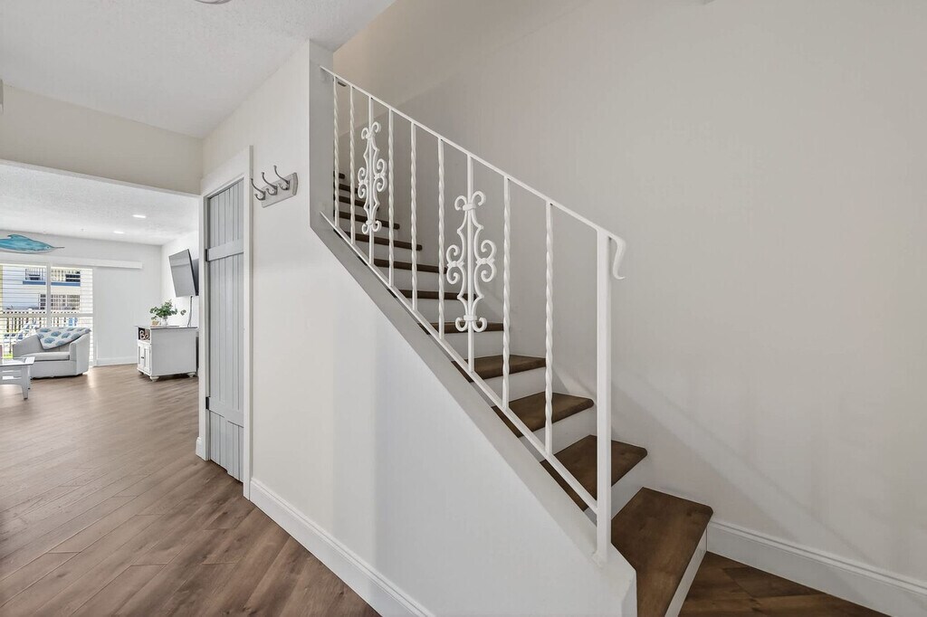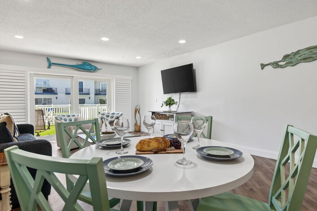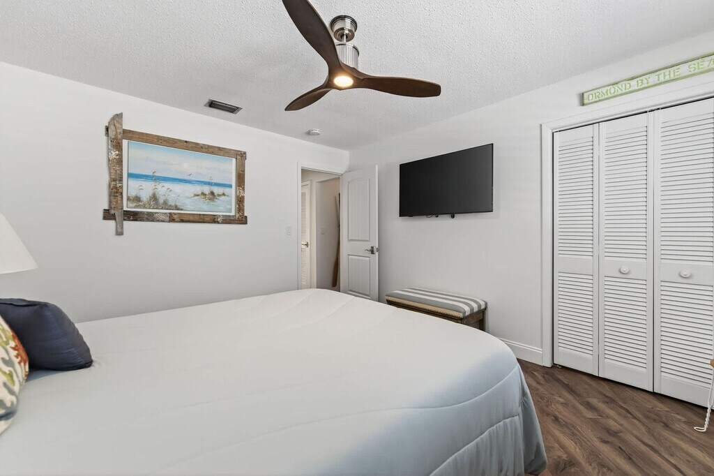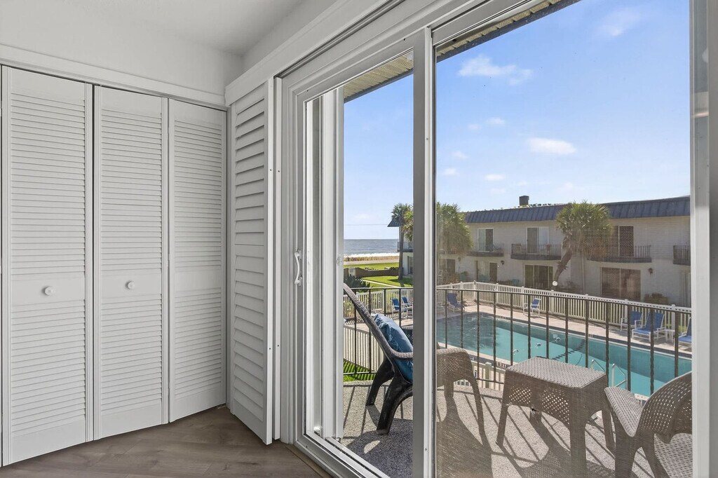 Relax in this beautiful and spacious townhome, just steps away from the no-drive section of the beach in peaceful Ormond-by-the-Sea. Enjoy breathtaking views of the pool and ocean from the back patio and upper balcony. This home is fully furnished and well stocked with the essentials you need for a longer stay, including a garage for parking or extra storage space. Feel at home in this lovely pet-friendly and family-friendly retreat. This townhome features two bedrooms, both located on the upper floor, and two full bathrooms, one on the ground floor and one upstairs. The spacious master bedroom contains a small kitchenette and has private access to a balcony overlooking the pool and courtyard, boasting beautiful views of the ocean. A single-car garage is available for guests, equipped with a washer and dryer, a second refrigerator, a propane grill, and plenty of beach chairs. The kitchen is well stocked with dishes, pots and pans, a toaster, and a drip coffee maker. Enjoy entertainment with three Smart TVs in the home, one in the living room and one in each bedroom, all with access to streaming apps. This home offers a single-car garage for parking or extra storage space. It is pet-friendly, making it a perfect choice for families traveling with pets. Ormond-by-the-Sea is a quiet neighborhood located on the northern part of the peninsula in Ormond Beach. The Villa Sereno community sits right on the ocean with direct access to the beach across the street. Guests will have access to the community pool and beautiful courtyard, and shops and restaurants are just a short drive down scenic A1A. While a car is needed to reach grocery stores and restaurants, the beach is just a short walk away. Quiet hours are between 21:00 and 07:00. This property is professionally managed by a trusted partner, ensuring you have support whenever needed during your stay. Registration Number: CND7407355 [SI]