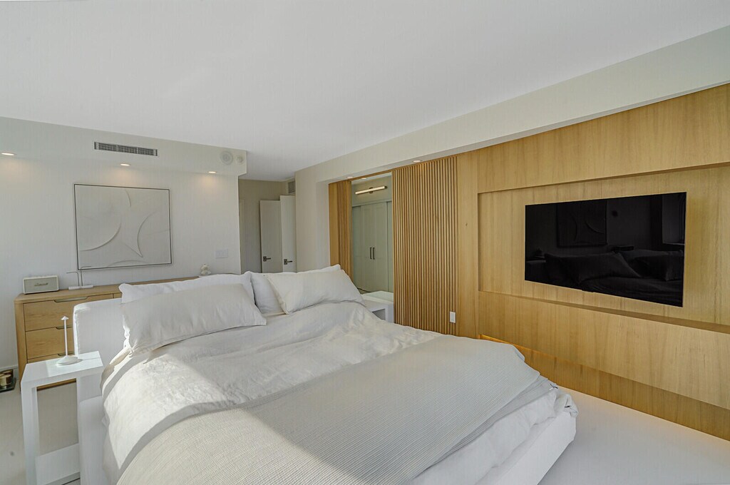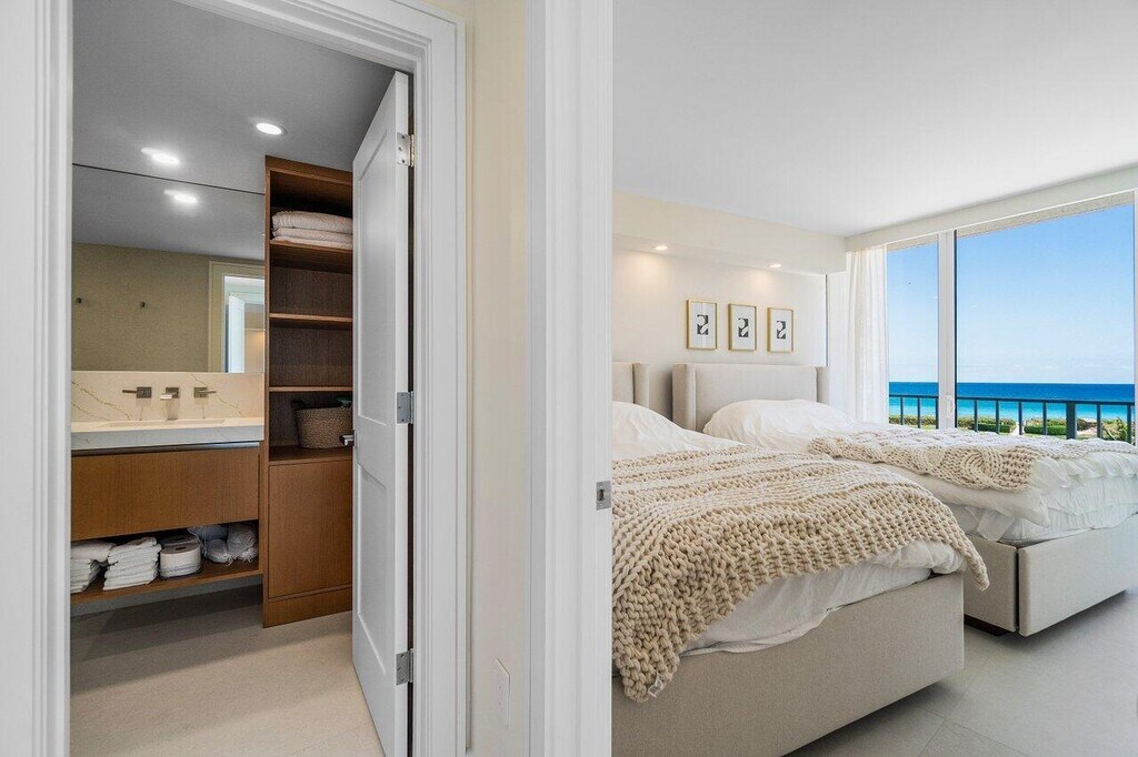 Experience breathtaking panoramic views of the ocean, Intracoastal, and pristine beach in the coming season. This beautifully renovated two-bedroom, two-bathroom apartment with a den and media room is nestled in the heart of sophisticated Palm Beach Island. Featuring a modern and contemporary design, this light-filled residence offers an elegant and inviting ambiance. The building boasts an array of luxury amenities, including a state-of-the-art fitness center, tennis courts, community room, heated pool, in-house management, library, 24-hour doorman security.