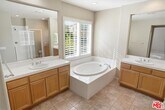 Beautiful three-bedroom home with a loft located in the highly desirable Alta Vista neighborhood of Valencia. This spacious home offers an inviting floor plan with hardwood flooring throughout the formal living room, dining room, and family room, along with shutters, recessed lighting, ceiling fans, and a cozy fireplace with a mantle and built-in entertainment niche.The kitchen opens to the family room and is designed for both everyday living and entertaining, featuring a center island, tile countertops, abundant cabinet space, and appliances that include a gas cooktop, single oven, microwave, dishwasher, and refrigerator. A sliding glass door leads to a private backyard with a stamped concrete patio, creating a comfortable outdoor space to enjoy.Upstairs, the loft offers flexible living space, shutters, and built-in shelving. The spacious primary suite includes two walk-in closets and an attached bathroom with dual vanities, a garden tub, and walk-in shower. Two additional bedrooms upstairs, one includes French doors that open to a balcony.Additional highlights include an upstairs laundry room with a full-size washer and dryer, extensive cabinet storage, a downstairs half bathroom, and a tandem garage. Residents can also enjoy community amenities including a pool, spa, and playground.This home is conveniently located near shopping, restaurants, schools, and the 5 Freeway.No pets. Tenants are required to obtain renters insurance. After viewing the property with a leasing agent, applications may be submitted online. Please do not disturb occupants. This is private property and no trespassing is permitted. MLS# 26751809