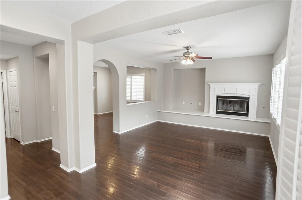 Beautiful three-bedroom home with a loft located in the highly desirable Alta Vista neighborhood of Valencia. This spacious home offers an inviting floor plan with hardwood flooring throughout the formal living room, dining room, and family room, along with shutters, recessed lighting, ceiling fans, and a cozy fireplace with a mantle and built-in entertainment niche. The kitchen opens to the family room and is designed for both everyday living and entertaining, featuring a center island, tile countertops, abundant cabinet space, and appliances that include a gas cooktop, single oven, microwave, dishwasher, and refrigerator. A sliding glass door leads to a private backyard with a stamped concrete patio, creating a comfortable outdoor space to enjoy. Upstairs, the loft offers flexible living space, shutters, and built-in shelving. The spacious primary suite includes two walk-in closets and an attached bathroom with dual vanities, a garden tub, and walk-in shower. Two additional bedrooms upstairs, one includes French doors that open to a balcony. Additional highlights include an upstairs laundry room with a full-size washer and dryer, extensive cabinet storage, a downstairs half bathroom, and a tandem garage. Residents can also enjoy community amenities including a pool, spa, and playground. This home is conveniently located near shopping, restaurants, schools, and the 5 Freeway. No pets. Tenants are required to obtain renters insurance. After viewing the property with a leasing agent, applications may be submitted online. Please do not disturb occupants. This is private property and no trespassing is permitted.