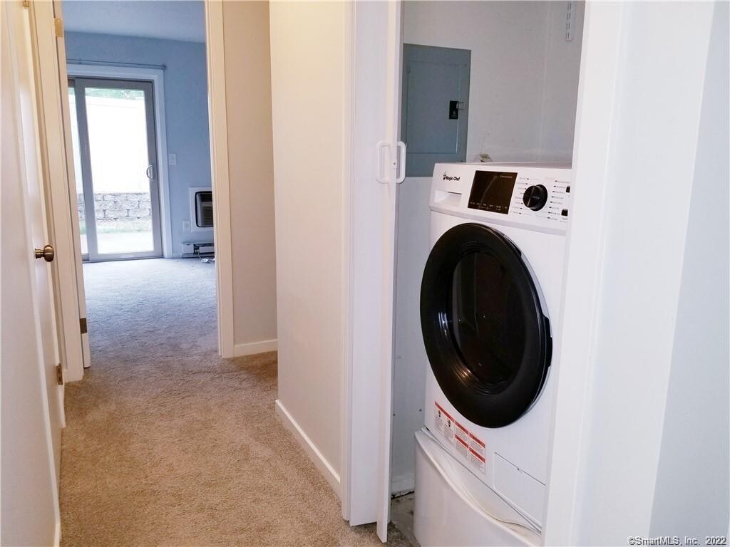 **AVAILABLE JUNE 1st** This cozy, first floor, 1-level living condo offers all that is sought after in a living space. The living room offers a spacious relaxation area containing a natural fireplace with a beautiful brick back splash and sliding glass doors which bring in a lot of natural light. The kitchen is equipped with a dish washer, refrigerator, and oven range as well as freshly painted cabinets. Directly across from the kitchen is a dining space with plenty of lighting and storage room. The roomy bedroom has generous closet space and additional glass sliding doors that lead to a private patio area. The unit offers a convenient washer/dryer. The unit is cooled via a wall unit air conditioner in the bedroom and heated with electric baseboard heat. There is a dedicated parking spot directly in front of the unit with additional parking for guests in the complex. The complex is a NO PET complex. The unit is centrally located: - 1 Mile from ESPN Headquarters - 1 Mile from Lake Compounce theme park - 3 Miles from Bristol Plaza Shopping Center - 3 Miles from the closest gym