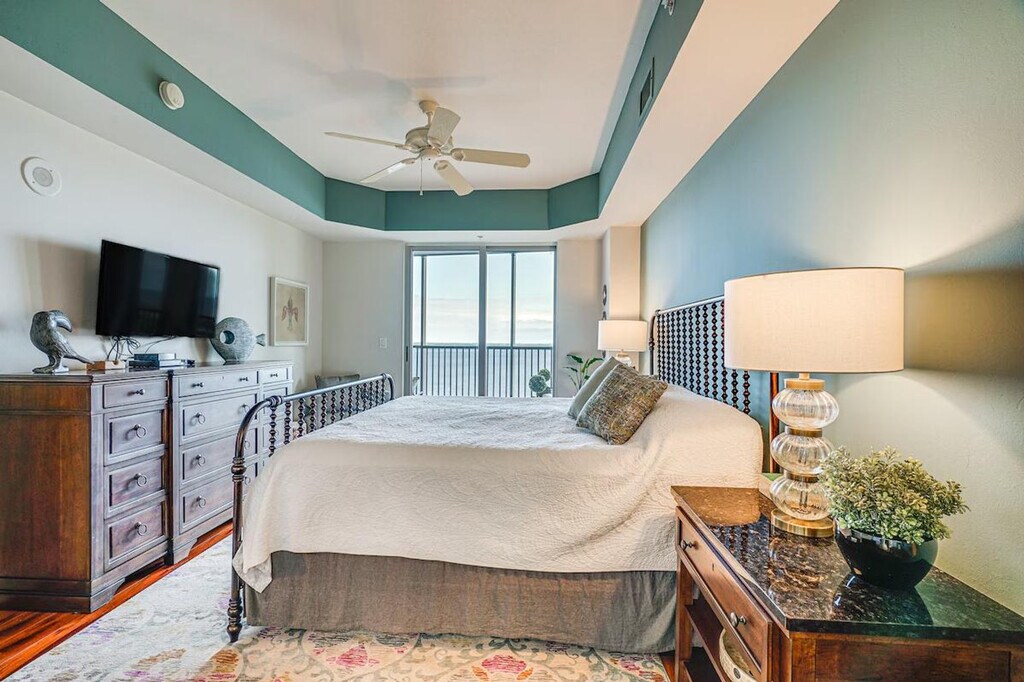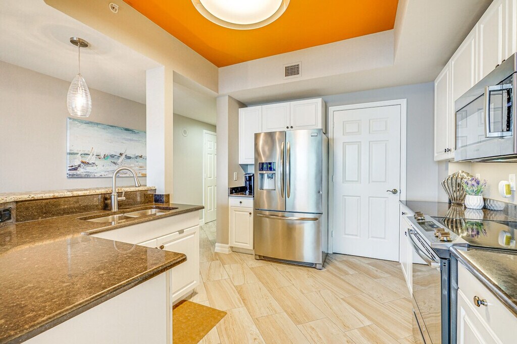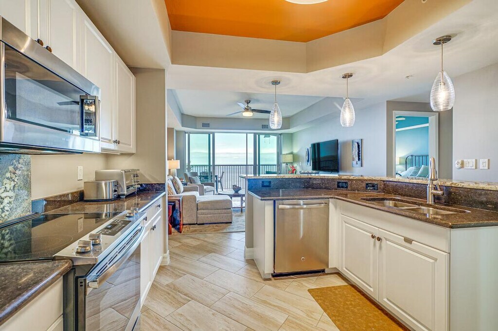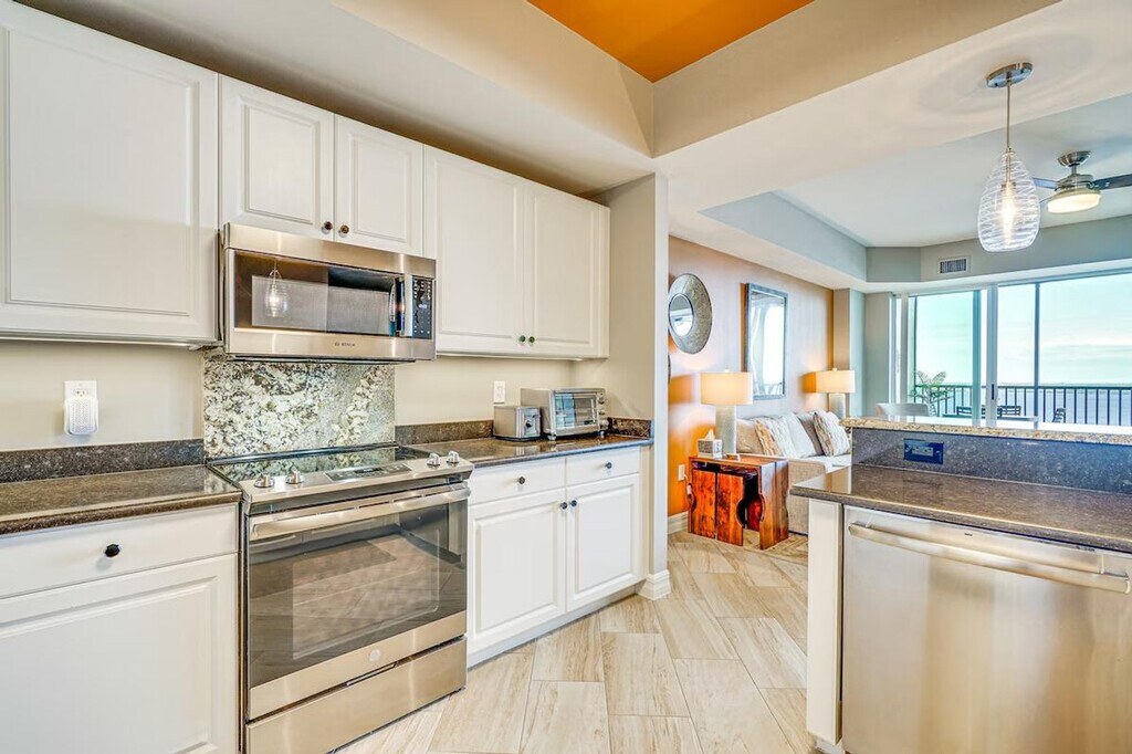 The advertised rate of $4,036/month is the lowest available price, based on a 30 day(s) stay with a move-in date of May 5, 2026. Rates vary depending on the duration of stay, season, and other parameters. For exact pricing and additional pricing components, please visit our website and enter your desired move-in and move-out dates. The rate is applicable when billed upfront; it can be higher if billed in multiple payments. Feel at home in this 3-bedroom, 3-bath condo in Fort Myers, located on the 14th floor with step-free entry via an on-site elevator. This lovely condo features 4 flat-screen TVs with cable, a fully stocked kitchen, and a private balcony with breathtaking views of the Caloosahatchee River. The kitchen is equipped with a refrigerator, stove/oven, dishwasher, dishware/flatware, cooking basics, a Keurig coffee maker, coffee grinder, microwave, toaster, toaster oven, water filter, and ice maker. Additional amenities include central air conditioning, central heating, a washer and dryer, linens and towels, an iron and board, trash bags, paper towels, a hair dryer, and complimentary toiletries. Enjoy the community's heated outdoor pool, outdoor hot tub, and gas grill. Reserved garage spots are available for 2 vehicles, with additional guest parking available on a first-come, first-served basis. Get your toes in the sand at Bunche Beach or shop and dine throughout the Fort Myers Downtown Commercial District, both easily accessible from this centrally located condo. Guests are required to fill out a form and register with the homeowner association before arrival. Smoking, pets, events, parties, and large gatherings are not allowed. Guests must be at least 25 years old to book. A photo ID may be required upon check-in. Includes a laptop workspace. [SI]