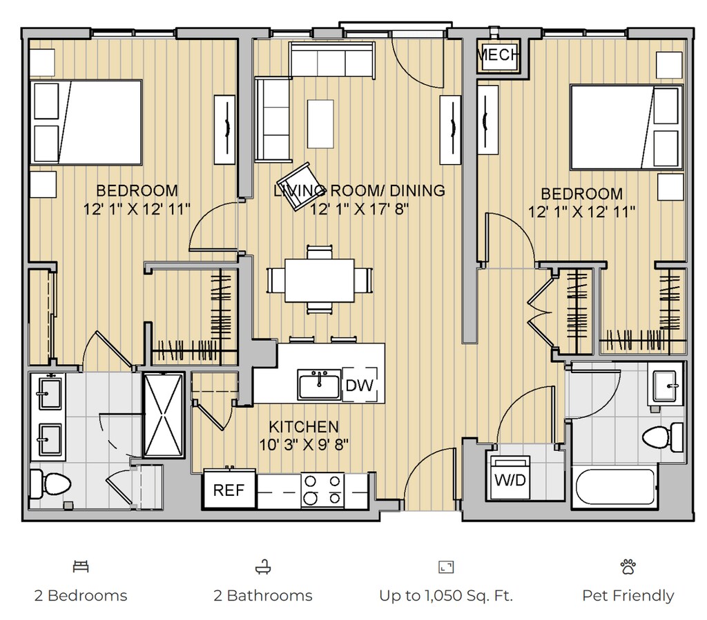 2 Dormitorios, 2 Baños, 1050 pies²Precio Mensual TotalDisponible May 16Detalles de Diponibilidad