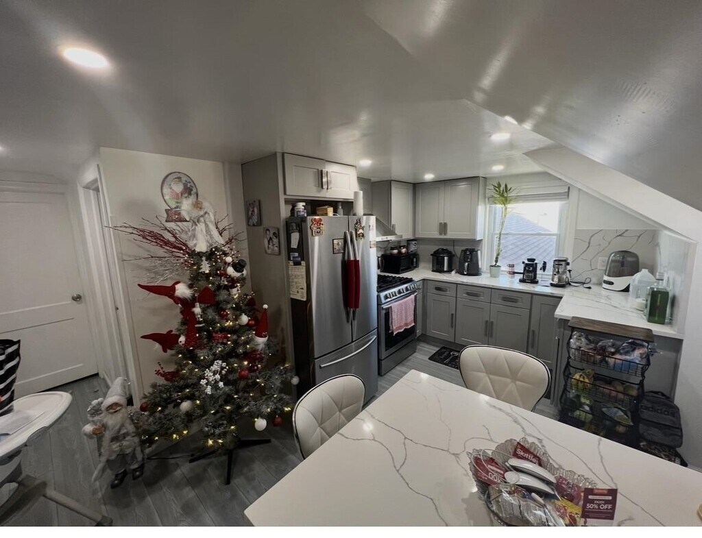 Beautiful and renovated apartment located on the second floor of a two-family building.It features two large bedrooms with closets and ample storage in each, and a large bathroom. The renovated kitchen includes all appliances, quartz countertops and island, a porcelain sink, and a dishwasher for added convenience. The most attractive feature of this beautiful and convenient apartment, which has everything for your comfort, is that the owner pays for hot water, cold water, and heating. The tenant only pays for electricity. For added security and peace of mind, the property has a security camera system. One month and half of security deposit. No pets.