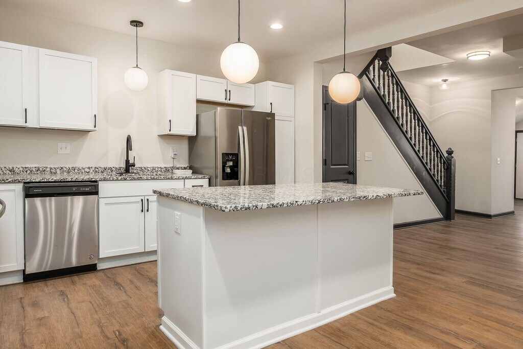 3 Bedroom,3 Bathroom Remodeled Franklinton Home! Come see this incredible top to bottom remodel in Franklinton! As you walk in the door,you will find a large living area with new LVP flooring and a beautiful fireplace. The kitchen features granite counters,white shaker cabinets,stainless steel appliances,a large island that can seat four,and space for a table. The first floor also has laundry hookups,the first bedroom,and a full remodeled bathroom. Upstairs you will find a carpeted landing area and two huge master suites with walk in closets and private full bathrooms with brand new granite vanities and fixtures. Outside features a fenced in backyard for privacy and off-street parking off the alley.