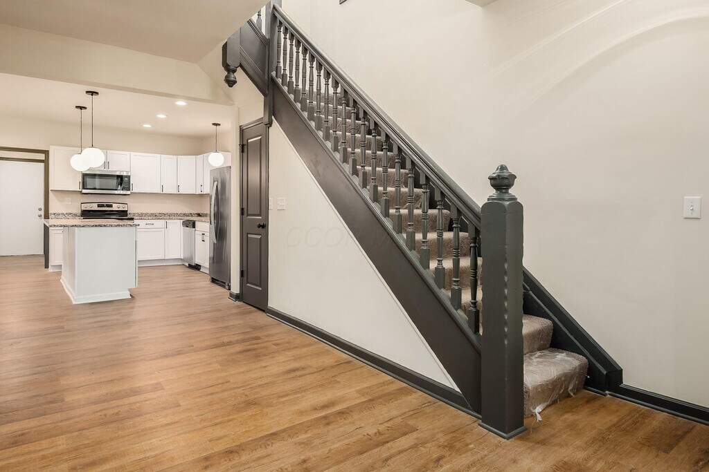 Come see this incredible top to bottom remodel in Franklinton! As you walk in the door, you will find a large living area with new LVP flooring and a beautiful fireplace. The kitchen features granite counters, white shaker cabinets, stainless steel appliances, a large island that can seat four, and space for a table. The first floor also has laundry hookups, the first bedroom, and a full remodeled bathroom. Upstairs you will find a carpeted landing area and two huge master suites with walk in closets and private full bathrooms with brand new granite vanities and fixtures. Outside features a fenced in backyard for privacy and off-street parking off the alley. Don't miss the chance to tour this one-of-a-kind home! Call today to schedule a tour and visit for more information! This home is priced above the Section 8 threshold.