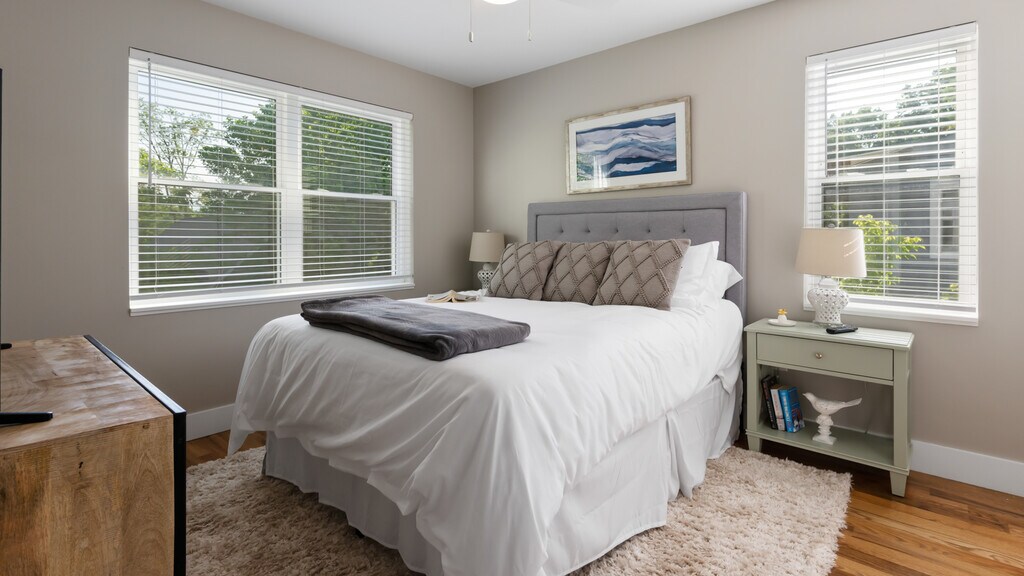 Fully Furnished 3BR/2.5BA Home in Oakley | 1–6 Month Lease | $3,000/mo. Available 1-5-26 Welcome to your ideal Asheville home! This beautifully furnished 3-bedroom, 2.5-bath home is located in a quiet Oakley neighborhood — just minutes from downtown Asheville, local hospitals, shopping, restaurants, and easy interstate access. Perfect for traveling professionals or anyone seeking a peaceful, turnkey, and move-in-ready home. Inside, the home offers luxury furnishings throughout, modern décor, and hardwood floors. The open-concept living area features an L-shaped sectional with a pullout queen sleeper, XL Smart TV, ceiling fan, and large windows letting in plenty of natural light. The kitchen is fully stocked and designed for serious cooking — featuring quartz countertops, energy-efficient stainless-steel appliances (refrigerator, range, dishwasher, microwave), coffee maker with both carafe and K-cup options, and everything needed to prepare meals of any size. Upstairs, you’ll find: • Primary bedroom with king Cocoon by Sealy memory foam mattress, Smart TV, walk-in custom closet, ensuite bathroom with dual vanity, subway-tiled shower/tub combo, and water closet. • Second bedroom with queen bed, Smart TV, and large closet. • Third bedroom with two full-size bunk beds (convertible to a queen bed upon request). • Shared full bathroom with subway-tiled shower/tub combo and tile flooring. Enjoy the best of indoor and outdoor living with three porches: • A lower covered porch with rocking chairs and party lights for relaxing evenings. • An upper porch with rattan furniture and beautiful mountain views (private access from the primary bedroom). • A back porch overlooking the fenced-in yard, complete with a gas grill, outdoor seating for four, and a firepit with Adirondack chairs. Additional highlights: • Washer and dryer in-unit • Ceiling fans in the primary and secondary bedrooms and living room • Wooded lot with ample parking for up to four vehicles • Pet friendly (dogs only, up to 2 max) — pet deposit required • Security deposit required (based on lease duration) Utilities: Tenants are responsible for all utilities, including internet/Wi-Fi, electricity, city water, garbage, and recycling. All accounts remain in the owner’s name- invoices will be shared monthly for tenant payment. We’re available anytime for showings — just message us with your preferred date and time, or call/text directly. $3,000/month | 1–6-month lease | Fully furnished & move-in ready