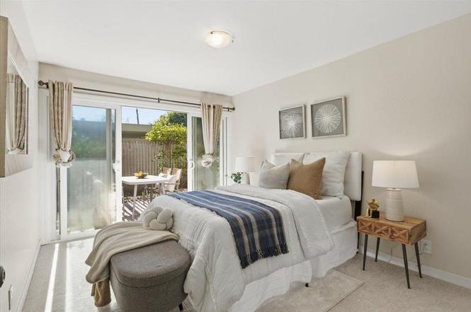 Furnished unit at Downtown Mountain View Charming ground-floor, 1-bedroom, 1-bath end unit located just minutes from Downtown Mountain View, Stevens Creek Trail, VTA, Caltrain, and major tech employers including Google, Apple, and Facebook. This bright and inviting home features Pergo flooring, a spacious living room, and a sliding glass door that opens to a private patio—ideal for relaxing or entertaining.Additional highlights include low HOA dues, low utility costs, an extra storage room, one covered carport space, and an additional parking space. Community amenities offer a swimming pool, clubhouse, and on-site laundry facilities. With quick access to Highways 101 and 85, commuting is easy and convenient.
