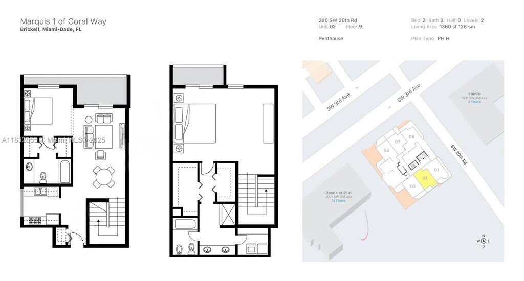 1 year lease - option to renew. Unfurnished. Awesome two-level Penthouse in prestigious The Roads, Miami. This 2 bed, 2 bath condo has 2 floors providing privacy/convenience for its residents. Amazing forever views of Brickell, Biscayne Bay, The Roads neighborhood, Coconut Grove and beyond. Porcelain flooring throughout, multiple closets, 2 balconies with partial water views facing east. 1 assigned covered parking. Huge laundry room in unit. Vibrant Brickell and Miami's Financial District is 2 minutes away with restaurants, Publix, stores, entertaining, and shopping within walking distance. Enjoy the coolest walking, jogging path: The Underline, a 10 mile linear park, urban trail. Fantastic location surrounded by Million-dollar houses in The Roads neighborhood. Listing posted by Paul Connolly [SYNDID 4125375 12112025]