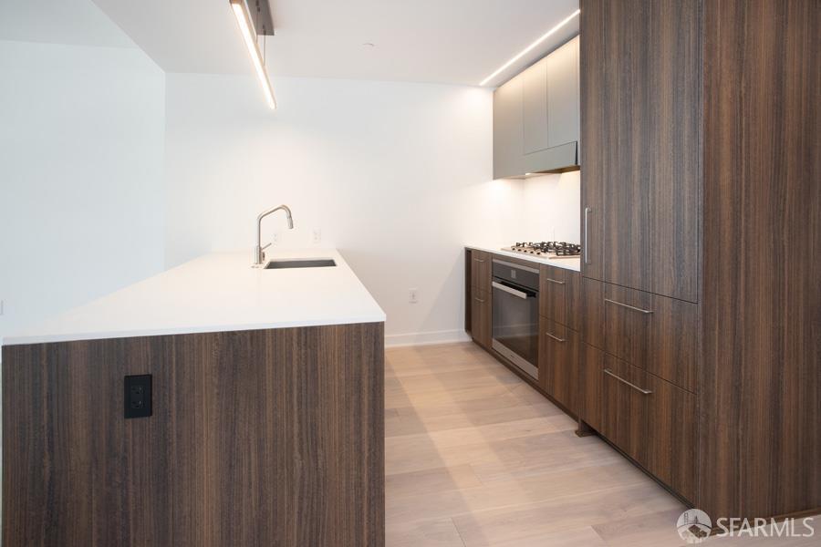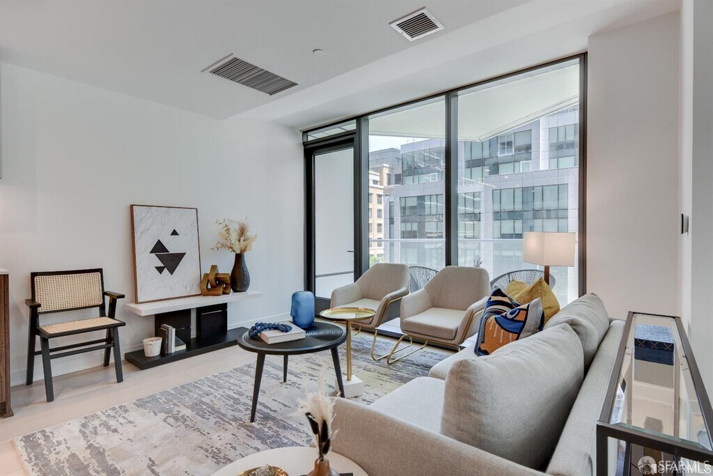 Exclusive 2Br/1Ba waterfront living at Mira w private balcony showcasing luxury upgrades by seller incl top-of-the-line Bianco Monarch plank HW floor. Incredible light filled, high ceiling residence w large windows & city as your backdrop. Enjoy cooking+entertaining in Chef's kitchen crafted w Frosty Carrina Caesarstone counters, sleek cabinetry by Sozo Studios, state-of-the-art appliances w gas stove. Dining/Living area opens to private view balcony. Spacious, light filled bedrooms feat CA Closet Systems. Modern bathroom w Volakas marble countertops, Italian-made porcelain tile & shower sized for comfort w Kohler polished chrome fixtures. Add'l lux upgrades incl custom medicine cabinet, glass shower enclosure, bath/laundry shelving, Bosch W/D. An iconic addition to the SF skyline, MIRA feats 24/7 elegant lobby, fitness ctr, children's rm, private dining/lounge on roof deck w bbq. Walk to Ferry Building/Farmer's Market/Embarcadero/Fidi/Oracle Park MLS # 426123341