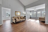 $2065 rent, $2065 security deposit, $45 app fee Welcome to this charming 2-bedroom, 2-bathroom condo in Barrington Park. This condo features newly installed luxury vinyl plank and a living area that boasts vaulted ceilings, creating an airy and spacious atmosphere that invites natural light to dance throughout the space. Adjacent to the living area, you'll find a cozy solarium, a tranquil spot perfect for lounging with a book or enjoying a morning coffee. Its large windows offer panoramic views, making it a delightful place to unwind. The kitchen, adorned with sleek countertops and modern appliances, overlooks the living space, providing an open feel ideal for entertaining guests. A staircase in the foyer leads up to a charming loft, offering versatility—a perfect spot for a home office, a child’s play area, or even a guest space. Both bedrooms are generously sized and offer comfort and privacy. The primary bedroom boasts an ensuite bathroom, complete with large garden tub to relax in.