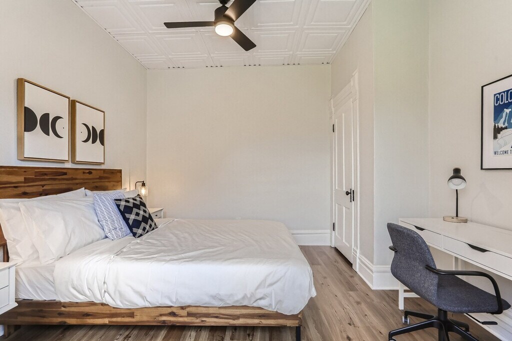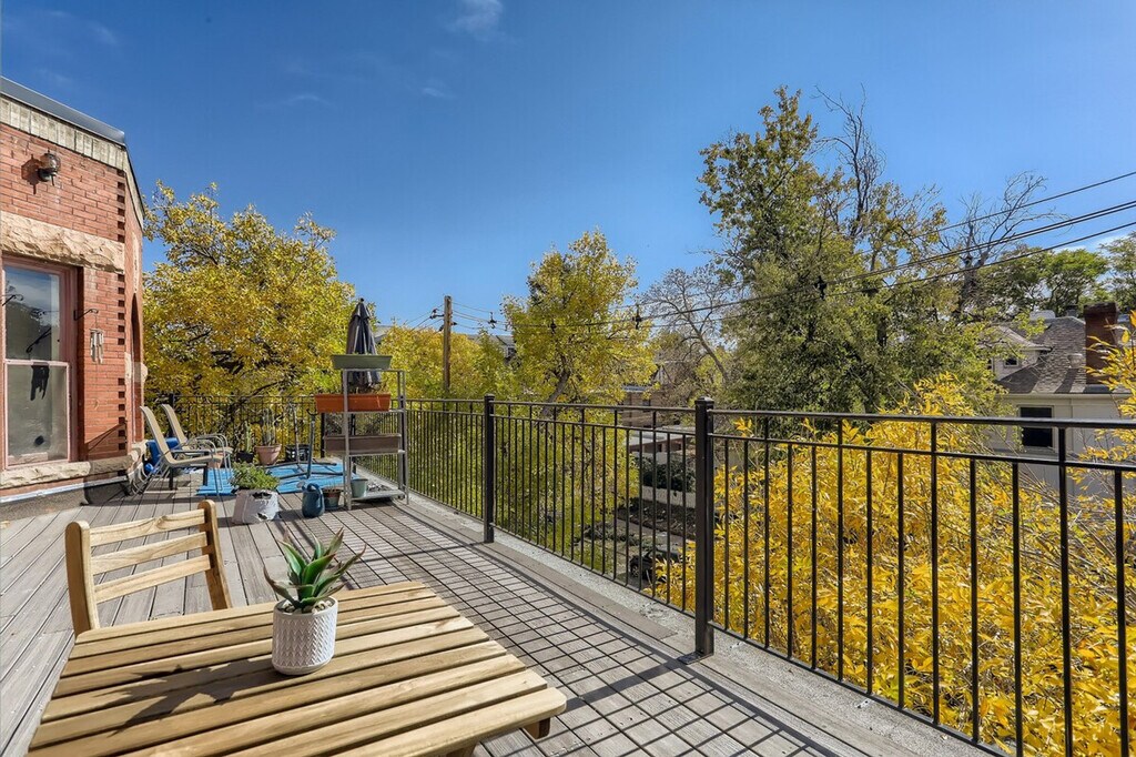 Unit 12 at 2805 E 16th Ave is a 620 sqft 1-bedroom apartment located on the third and top floor, offering an abundance of natural light through large west-facing windows and a newly remodeled kitchen. Two separate work-from-home workspaces are available in the den and bedroom office nook, and you can enjoy a coffee or a glass of wine from the bistro set on the deck outside your window. Newly renovated and furnished by a designer in Fall 2022, this apartment features a comfy queen bed with linens and a fully stocked kitchen. There is plenty of closet space, and more storage is available upon request. The apartment is in a safe and quiet neighborhood nestled next to the park. All utilities and internet are included, valued at $150+ per month. Fast internet is available with 300mbps download and 10mbps upload speeds. A smart TV is provided for streaming services, and there is no cable. Free communal laundry is available in the basement, and a propane grill is provided. Free street parking is available with a 2-hour limit from 8am-6pm Monday through Friday, but unlimited on nights, weekends, and holidays. Adjacent blocks offer unlimited free parking. A 90-day parking pass can be applied for to park in the 2-hour zone directly in front of the building without restrictions. Pet rent is $90 per dog per month, with a strict no cats policy. The apartment is just 1 block from City Park and 5 minutes from Cheesman Park and the Botanic Gardens. It's 8 blocks to Sprouts Farmers Market, 8 minutes to Cherry Creek Shopping District, and 10 minutes to downtown Denver, RiNo, and LoHi. Red Rocks is 30 minutes away, and ski resorts are 1 hour and 30 minutes away. Nearby hospitals include St Joseph, Presbyterian St Luke’s, and Rose, which are 5 minutes away, and UC Health University of CO and Children’s Hospital CO, which are 15 minutes away. The host controls central heat from a single thermostat for the building's steam boiler system, while guests control window AC units and ceiling and tower fans. The property is non-smoking and non-vaping, with violation resulting in damage fees. Noise disturbances should be minimized to avoid eviction without refund. Check-out time is 10 AM, with a $50 fee for every additional 30 minutes past check-out. Guests are responsible for removing all personal property at check-out, with a minimum $50 fee for returning items left behind. The apartment includes two separate work-from-home workspaces, one in the den and another in the bedroom office nook. Fast internet with 300mbps download and 10mbps upload speeds supports remote work needs. [SI]