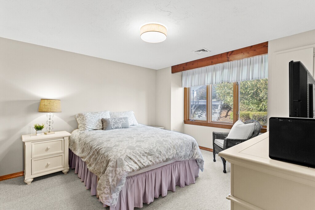 Available for annual lease, this fully furnished 3-bedroom, 2-bath townhouse is located in the highly sought-after South Down Shores community on Lake Winnipesaukee. Offering approximately 1,600 square feet of finished living space across two levels, this end-unit residence combines comfort, functionality, and an exceptional lakeside setting. The main level features an open living and dining area with a gas fireplace, abundant natural light, and direct access to outdoor space. The updated kitchen includes granite countertops, tile backsplash, and modern appliances. A first-floor bedroom and bathroom, along with first-floor laundry, provide flexibility for guests or work-from-home needs. Upstairs, you'll find two generously sized bedrooms that share a full bath, including a spacious primary bedroom. Additional highlights include central air conditioning, cathedral ceilings, skylights, natural woodwork, and ample storage throughout. The home includes two parking spaces and is just a short walk to the beach, marina, and community amenities. Enjoy lake views, manicured grounds, and all that South Down Shores has to offer in a quiet, gated, year-round neighborhood. Please reach out for a showing today! Virtual tour link: