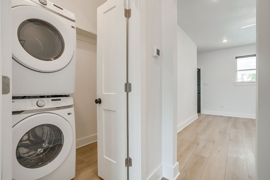 NORTH OF BERRY $995.00 per bedroom, Full unit is only $4975.00 for June 1 2026- May 31, 2027. TCU housing at its best. There are 5 generous private bedrooms, each with a private bathroom and a private coded door lock. The common floor features solid-surface flooring, a balcony, a large open living area with a flat-screen TV, a powder bath, and a kitchen that your parents will envy. There are 2 bedrooms on the 1st floor and 3 on the 3rd floor with a set of washers and dryers on each floor – so no schlepping up and down the stairs to do your laundry. Parking is private, well-lit, fenced, off-street, and on-site. Utilities not included. 5 Private Bathrooms 5 Private Bedrooms Keyless Entry Onsite Parking Private Coded Door Locks Ring Camera Ring Doorbell