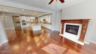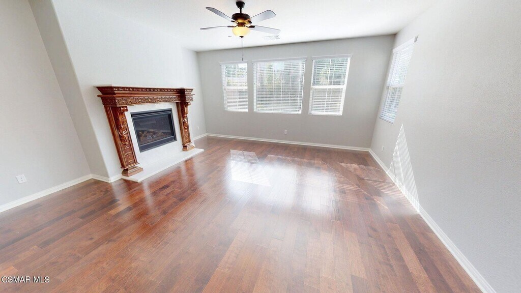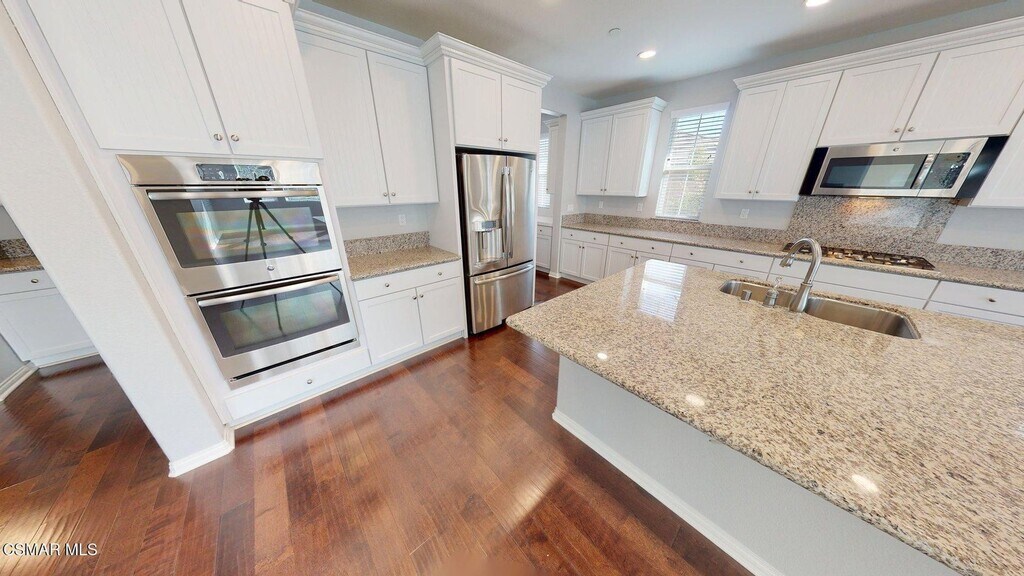 Located at the end of a cul-de-sac in desirable Simi Valley, this beautiful single-story home offers space, comfort, and exceptional indoor-outdoor living. Wood flooring flows throughout the expansive living areas, creating a warm and inviting atmosphere. The open-concept kitchen is a true centerpiece, featuring an oversized granite island, abundant counter space, and stainless steel appliances by GE Appliances. The kitchen opens seamlessly to the spacious family room with a custom fireplace, perfect for everyday living and entertaining. Additional highlights include a Butler's pantry, a large walk-in pantry, and an oversized indoor laundry room with extra storage. Privately situated on one side of the home, the generous primary suite features a spa-like bathroom with dual sinks, a large soaking tub, a separate shower, and an expansive walk-in closet with custom-built-in cabinetry and cedar-lined finishes. Down the hallway, you'll find three additional well-sized bedrooms, two with walk-in closets and one with custom built-ins, along with two additional full bathrooms, offering flexibility for family, guests, or home office space. The property also includes solar assistance, a three-car attached garage, and an expansive, flat 18,000+ square foot lot ideal for entertaining, gardening, or creating your dream backyard retreat. Conveniently located near award-winning schools, parks, shopping, dining, and freeway access, this home truly offers the best of comfort, functionality, and location.