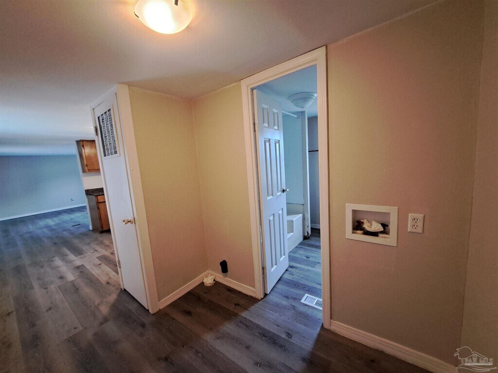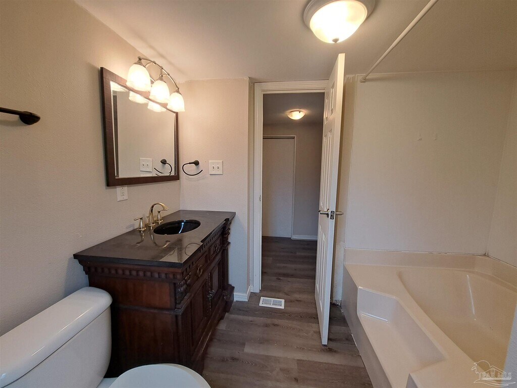Welcome to this quiet mobile home park off Pine Forest Rd! This charming 2BR/1.5BA MH close to I10 offers everything you need for comfortable living. Step inside and discover a spacious living room with a kitchen/dining combo that includes plenty of cabinet space,perfect for preparing and enjoying meals. The split floor plan ensures privacy and convenience,with the half bath located in the master bedroom and a full bath with a garden tub next to the second bedroom. This home features an indoor laundry area for your convenience. The wood-look vinyl plank flooring adds a touch of elegance to the space. With all electric appliances,you can enjoy hassle-free living. Small pets are considered upon owner approval and $325 non-refundable pet fee per pet. No smoker's please. Roommates,if accepted,must apply and qualify individually.