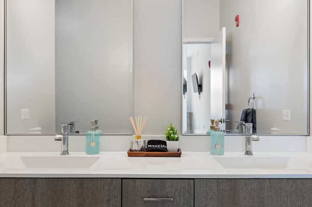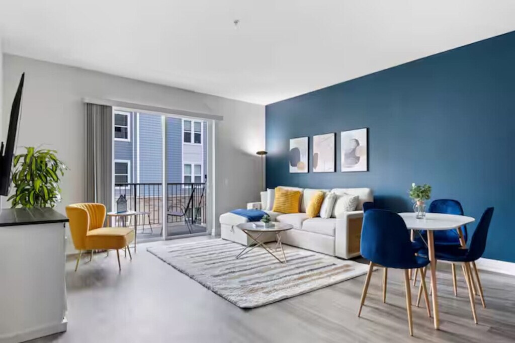 Feel at home in this professionally managed 2-bedroom, 2-bathroom apartment, providing a premium, resort-like experience that perfectly balances luxury and comfort for business travelers and families. Designed to serve a short getaway or a longer business trip, this apartment is fully stocked with items and amenities. The stylish living room features a smart TV, comfortable seating, board games, and a dedicated dining area. The fully stocked kitchen includes a coffee station, stainless steel appliances, and cooking supplies. Other notable amenities include in-unit laundry, free parking, and outdoor BBQ grills. The apartment community offers resort-like amenities, including a dedicated kids playroom, a state-of-the-art fitness center and yoga room, a private patio overlooking the courtyard, a pickleball court, a sauna, a library room, a lounge with a pool table and shuffleboard, and well-lit outdoor firepits and a dining area. Please note the layout of the apartment may be flipped vs the pictures, however the exact same items will be available. Unwind at the exclusive pool (closed for the season as of September 2, 2025) and the community lounge with a coffee bar. Located less than 10 minutes from downtown Naperville and Oakbrook, and a short drive to downtown Chicago, this apartment is also a short walk from numerous highly rated restaurants, grocery stores, and attractions. Situated near plenty of suburban Chicago gems, including the beautiful Morton Arboretum, luxurious downtown Naperville, and Oakbrook shopping and business centers. Strict adherence to the policies is required, including no parties, smoking (of any kind), or community disturbance. No unauthorized guests are allowed. Violators will be subject to a $500+ fine. Each bedroom has a dedicated workspace with a monitor, surge protector, and high-speed Wi-Fi. [SI]