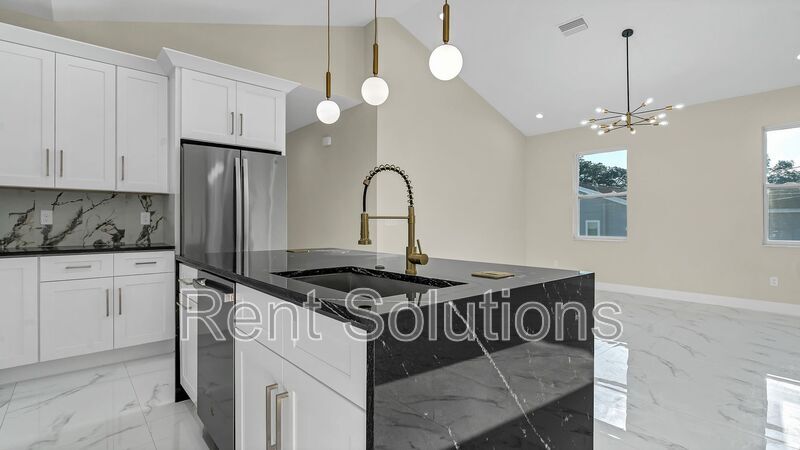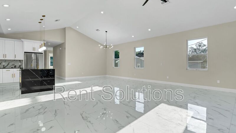 To schedule a showing, you may call . Completed in 2024, this newer construction home in North St. Pete is a stunning 4-bedroom, 3-bathroom, 2-car garage masterpiece with 2100 sq ft of living space. Annual/Unfurnished Rental. The moment you arrive, you'll be greeted by lush landscaping, vibrant plants, and an inviting front patio. Step through the impressive 8-foot entry door into the foyer, where sleek luxury tile flooring extends throughout the entire home. To your left, you'll find two of the four spacious bedrooms, sharing a beautifully designed guest bathroom with exquisite tile-work and quartz countertops. Continuing through the home, a hallway on your right leads to a large utility room equipped with full-size washer/dryer hookups and ample storage space. This hallway also provides access to the 2-car garage and the third bedroom, complete with an en suite bathroom and a walk-in shower. Enter the expansive great room, where cathedral ceilings soar above an open-concept living and dining area. Rare all-glass French doors invite you out to a cozy patio and backyard, while natural light fills the space. The gourmet kitchen is a showstopper, featuring a large island with a waterfall edge and quartz countertops, a stunning backsplash with gold accents, and elegant cabinetry adorned with gold fixtures. Top-of-the-line stainless steel appliances are ready for your culinary adventures. The split floor plan ensures privacy, with the primary suite located just off the living area. The spacious primary bathroom boasts dual vanities with quartz countertops, a modern illuminated mirror, a luxurious walk-in shower, and a large walk-in closet. Every room is thoughtfully designed with ceiling fans and recessed lighting for ultimate comfort. Situated in a fantastic North St. Pete location, this home offers easy access to major highways, downtown St. Pete (10 minutes), downtown Tampa, and the Gulf beaches! Enjoy the friendly neighborhood, close to schools, parks, shopping, dining, entertainment, hospitals, and more. This home is being offered on an annual/unfurnished basis. Utilities are tenant responsibility. Pet Friendly at owners discretion with a $350 non-refundable pet fee per pet. Don’t miss out on this amazing rental opportunity and schedule your viewing today! Renters insurance is required. To view a 3D tour copy and paste the following link: If you decide to apply for one of our properties: Screening includes credit/background check, income verification of 2.5 to 3 times the monthly rent and rental history verification. We encourage applicants with credit scores above 600 to apply, as meeting this criteria will help streamline the application process. APPLICANT CHARGES: Application Fees: $75 each adult, 18 years of age and older (non-refundable). Lease Initiation Admin Fee: $150.00 after approval and upon signing. Security Deposit: Equal to one month’s rent. $25 each pet application fee for pet verification (non-refundable). Current vaccination records will be required. ESA and service animals are FREE with verified documentation. Pet Fee if applicable (non-refundable) $350 each pet. For any questions, please contact Lisa Connors with Rent Solutions at . Amenities: Ceiling fans, Large Closets, Mini Blinds, Patio, Separate Dining, French Doors, Pantry, Walk-in Closets, Window Coverings, Vaulted Ceilings, Electric, Eat-in Kitchen, Attached Garage, Washer/Dryer Hookups, Central Air, Hookups, Single Family Home