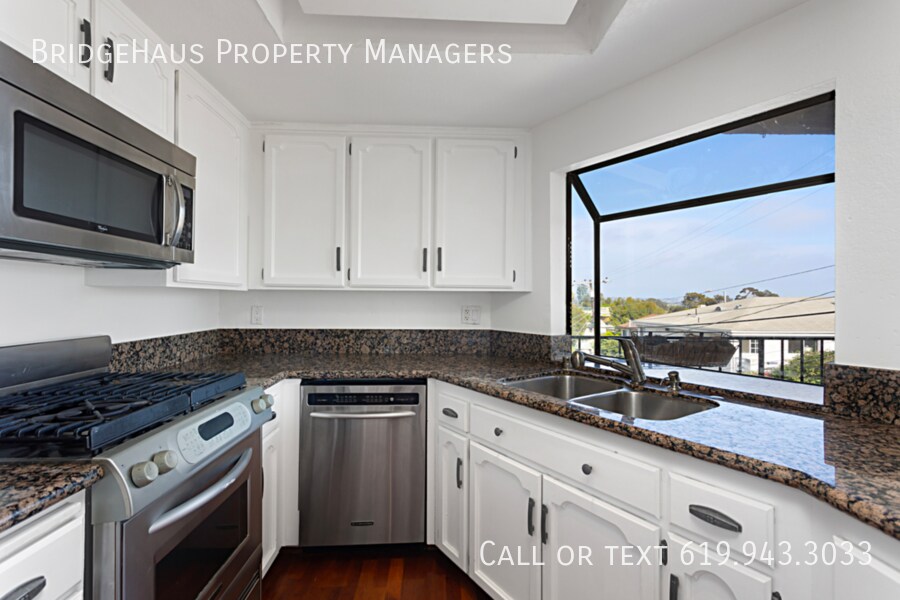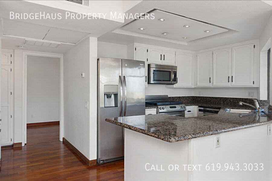 Bright and modern 2-bedroom, 2-bathroom condo featuring an open living area, well-appointed kitchen and hardwood floors throughout for a polished look. Key Features: -2 full bathrooms -Open-concept bright airy living, dining, and kitchen with large windows to bring in abundant natural light. Top-floor retreat with sunset views from the living room. -The dining place is perfect for guests, the adjacent modern kitchen features dark wood cabinetry, granite counters, stainless steel appliances and a practical island creating a seamless flow for cooking and entertaining. -Primary bedroom offers calming tones with ample natural light, features mirror closets, wood laminated floors and 1 full bathroom with handle support in the shower/bathtub. -Second Bedroom/Flex Space: A versatile room that can function as a guest retreat or home office, with clean lines. -In-unit laundry and ample closet space. -Efficient built-in shelving in hallways adds storage and display space, while sheer curtains soften the daylight and enhance the overall brightness of the home. -Parking: 2 parking spots in garage. Centrally located in a gated community providing quick access to the major freeways 94, 5, and 805. Pets are not allowed. Tenant is responsible for Electric/Gas, Cable.