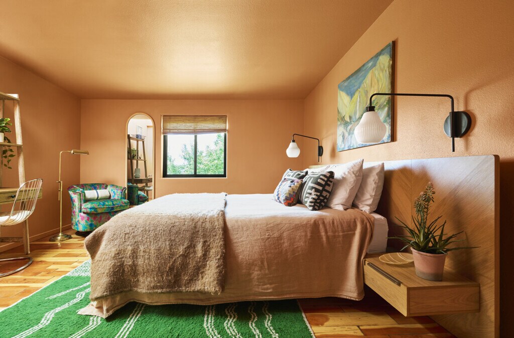 Feel at home in The Michu Suite, a cozy and large suite in the heart of Midtown Santa Fe, overlooking the Santa Fe River and minutes from downtown. This suite is filled with wonderful surprises, from its hand-plastered dining nook with built-in seats, to its vintage gas fireplace, to its soaking tub under a skylight to the stars. It features a lush, comfy queen bed overlooking French doors onto a private patio. Located in a collection of 6 beautiful suites, this apartment is ideally situated in Midtown Santa Fe. [SI]