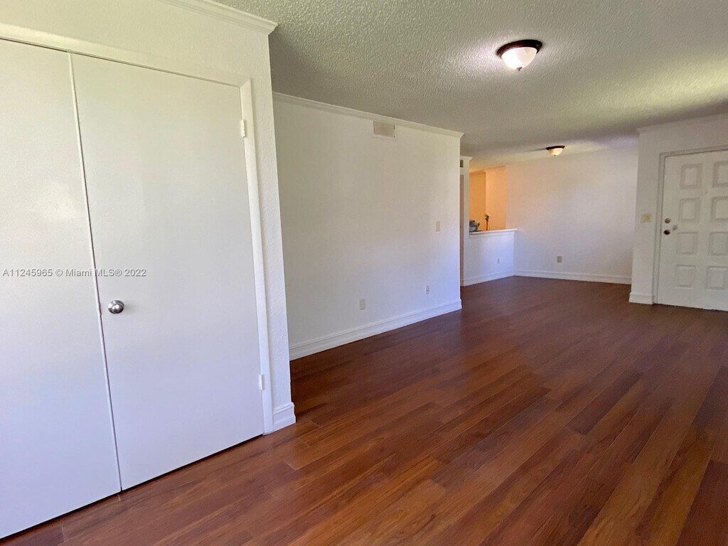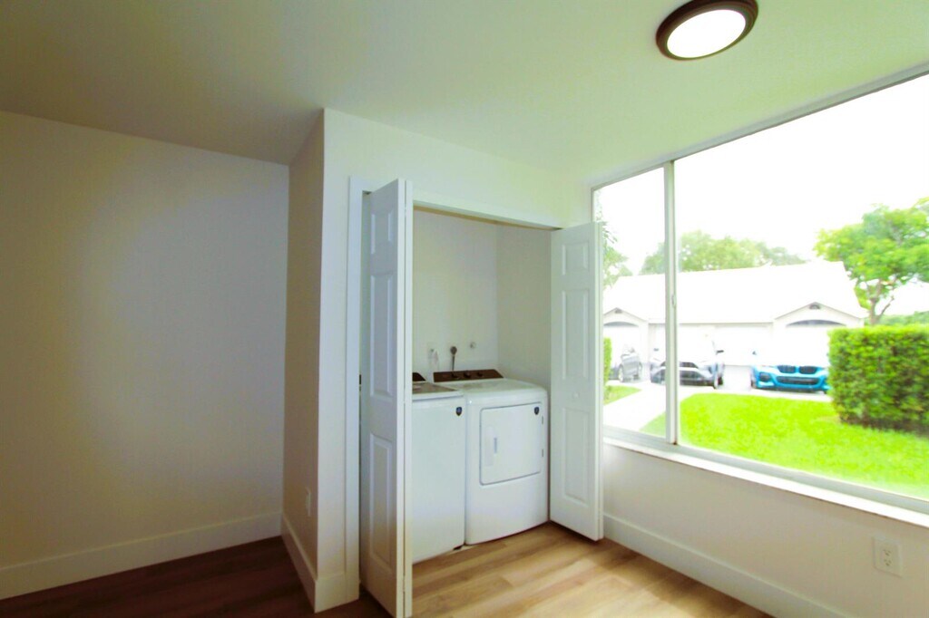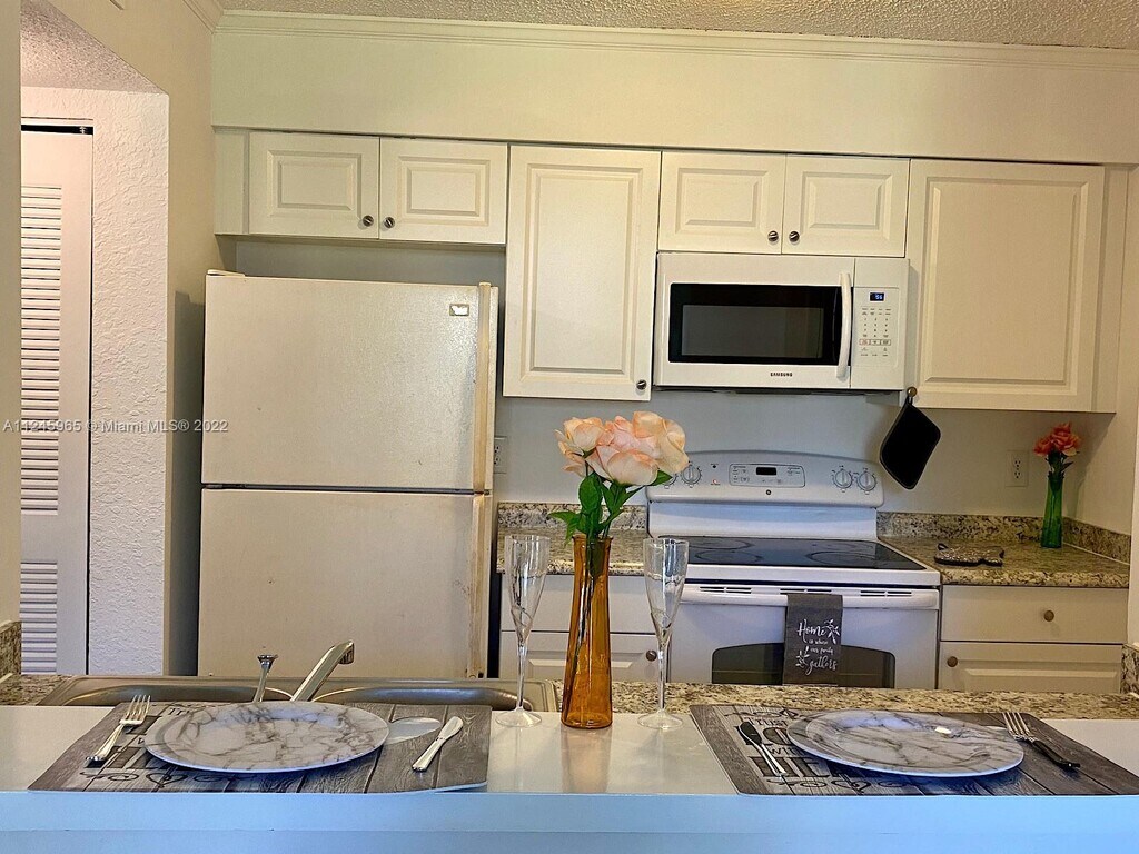 Lovely one-bedroom, one-bathroom, completely renovated condo on the first floor featuring abundant natural light in a well-maintained community with three pools, a gym, and more. The unit boasts stunning vinyl wood flooring, a nearly new full-size washer and dryer, beautiful ceiling fans in every room, ample closet space, and a tastefully renovated bathroom with elegant white finishes. The modern kitchen includes stainless steel appliances, such as a microwave and dishwasher. This is an opportunity not to be missed.