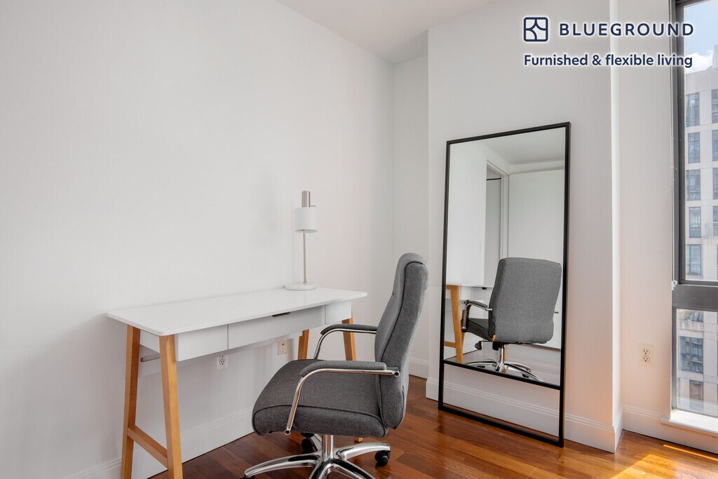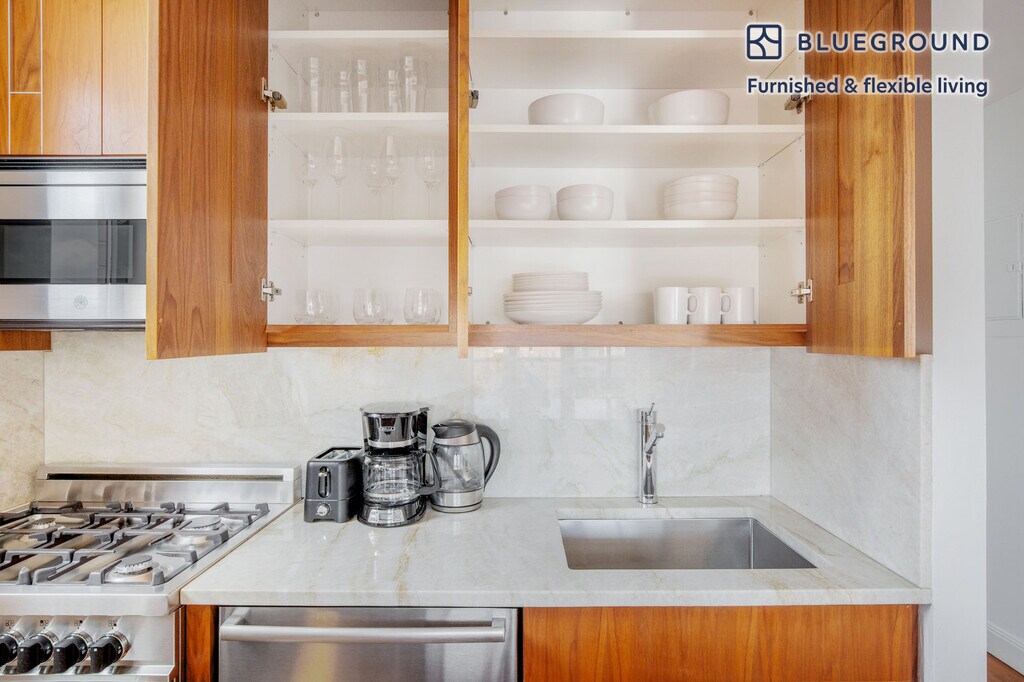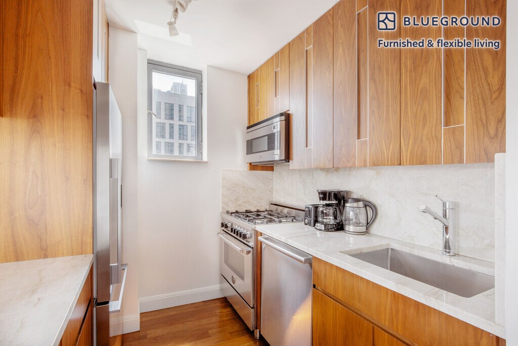 Discover the best of New York, with this one bedroom apartment in Gramercy Park with balcony views over the city. It’ll be easy to simply show up and start living in this furnished apartment with its fully equipped kitchen, living room, and our dedicated, on-the-ground support. (ID #NYC1181) The advertised rate of $6,240/month is the lowest available price, based on a 2 month(s) and 10 day(s) stay with a move-in date of January 1, 2026. If you’re looking for a 1-year stay, the rate is $8,030/month. Rates vary depending on the duration of stay, season, and other parameters. For exact pricing and additional pricing components, please visit our website and enter your desired move-in and move-out dates. The rate is applicable when billed upfront; it can be higher if billed in multiple payments. Brokers are welcome to reach out. Were you looking for an unfurnished lease? Try Blueground instead and upgrade from unfurnished to furnished living: - Furnished at rates comparable to unfurnished - No setup or furniture costs - save thousands - Move-in ready - save time, just bring your suitcase Designed with you in mind As with any Blueground apartment, you’ll find a thoughtfully designed space complete with beautiful furniture and a fully equipped kitchen in this one bedroom property. And, thanks to our superior quality mattresses, luxury linens, and towels, you can relax knowing you’ll always feel comfortably at home. When you’re ready for some fun, you can take in the New York vibes or bring the entertainment to you with the premium wireless speaker or smart TV. This apartment also offers in-apartment laundry. Sleeping arrangements Queen Bed, 63in/160cm Amenities Building amenities unique to this one bedroom apartment include an on-site: - Doorman - Dryer - Elevator - Washing machine - Lounge - Pets allowed Arrival and ongoing support The entire apartment is yours to enjoy! Throughout your stay, you’ll have access to our Client Experience team through the Blueground App. You can schedule additional cleanings, submit maintenance requests, and view our neighborhood recommendations with just a few taps. We’ll share all details upon confirmation of your stay. Ideally Located This furnished apartment is located in Gramercy Park, in central Manhattan and takes its name from a quaint, fenced-in private park. Home to the Roosevelts back in the 1800s, as well as many politicians and artists, the area was designed to house fashionable families. Today, it attracts young families and students who seek an inviting place to call home. On weekends, the benches and beautiful trees make the surrounding area of Gramercy Park the ideal place to jog or relax. Its central location makes it easy to get downtown or easily commute uptown for work. Second and Third Avenue offer a great variety of fine dining and bars, ideal for weekday socializing. Union Square, just a few steps away, is a bustling shopping and transportation hub. Grand Central station is only an 18-minute subway ride away. Other things to note Building amenities may have an extra cost. This Blueground apartment has flexible lease options, allowing you to book it for one month, a year, or more. Pets are welcome, though weight limits and breed restrictions apply and may incur fees. Brokes CYOF. We take great pride in ensuring every photo displayed is shot in our own units with our actual furnishings. That said, we regularly refresh our decor and furniture arrangement, which may differ from what’s pictured. [SI]
