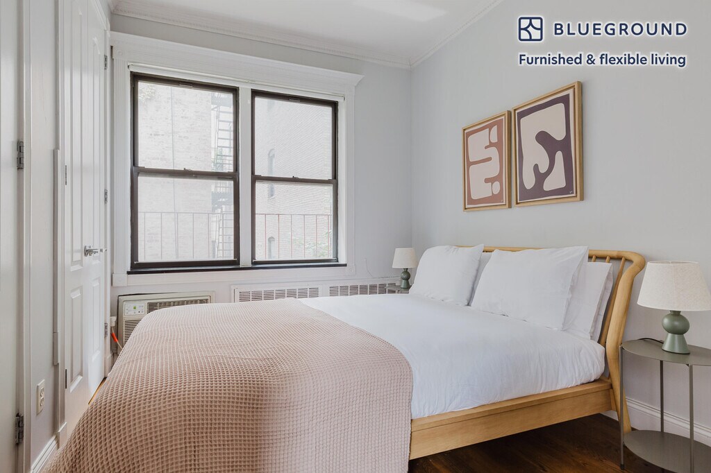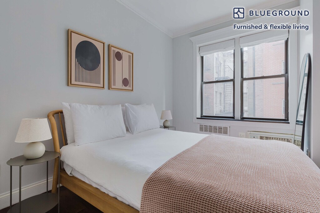 Feel at home wherever you choose to live with Blueground. You’ll love this charming West Village furnished two bedroom apartment with its modern decor, fully equipped kitchen, and roomy living room. Ideally located, you’re close to all the best that New York has to offer! (ID #NYC827) The advertised rate of $8,100/month is the lowest available price, based on a 2 month(s) and 29 day(s) stay with a move-in date of March 1, 2026. If you’re looking for a 1-year stay, the rate is $9,150/month. Rates vary depending on the duration of stay, season, and other parameters. For exact pricing and additional pricing components, please visit our website and enter your desired move-in and move-out dates. The rate is applicable when billed upfront; it can be higher if billed in multiple payments. Brokers are welcome to reach out. Were you looking for an unfurnished lease? Try Blueground instead and upgrade from unfurnished to furnished living: - Furnished at rates comparable to unfurnished - No setup or furniture costs - save thousands - Move-in ready - save time, just bring your suitcase Designed with you in mind Thoughtfully designed with bespoke finishes, modern furnishings, and a fully equipped kitchen, you’ll enjoy that “I’m home” feeling with this Blueground apartment. Whether you’re lounging in your beautiful living room streaming the latest and greatest entertainment on the smart TV or premium wireless speaker, or getting some well-earned rest on the superior quality mattress with luxury linens, you’ll fall in love with everything this West Village apartment has to offer. This apartment also offers in-apartment laundry. Sleeping arrangements Queen Bed, 63in/160cm Queen Bed, 63in/160cm Amenities Building amenities unique to this two bedroom apartment include an on-site: - Dryer - Elevator - Washing machine - Pets allowed Arrival and ongoing support The entire apartment is yours to enjoy! Throughout your stay, you’ll have access to our Client Experience team through the Blueground App. You can schedule additional cleanings, submit maintenance requests, and view our neighborhood recommendations with just a few taps. We’ll share all details upon confirmation of your stay. Ideally Located This furnished rental is located in the West Village. Cute storefronts and some cobblestone streets give the charming neighborhood the feel of a quaint small town. Populated with shoppers, diners and art lovers. The historically artistic area has numerous piano bars, cabarets, and theaters to discover. Both Times Square and Wall Street are just 15 minutes away by subway. Other things to note This Blueground apartment has flexible lease options, allowing you to book it for one month, a year, or more. Pets are welcome, though weight limits and breed restrictions apply and may incur fees. Brokes CYOF. We take great pride in ensuring every photo displayed is shot in our own units with our actual furnishings. That said, we regularly refresh our decor and furniture arrangement, which may differ from what’s pictured. [SI]