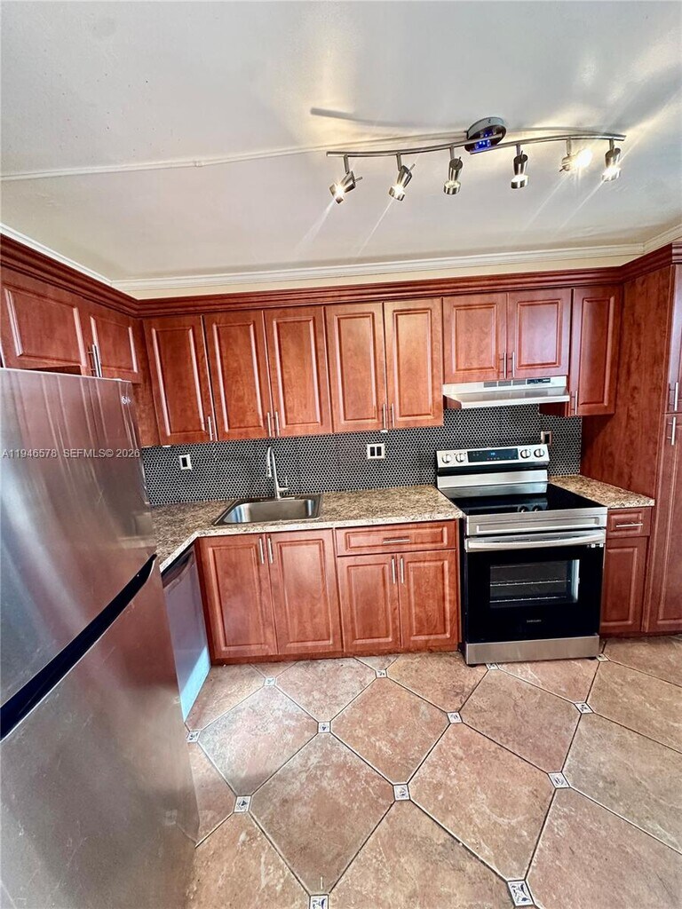 Beautiful and modern 1-bedroom, 2-bath unit, fully renovated and move-in ready. This spacious residence features porcelain floors, custom ceiling moldings, designer lighting, and brand-new appliances. Bright and open layout with a clean contemporary style throughout. Located directly across from Oleta River State Park and just minutes from Sunny Isles Beach, offering the perfect blend of nature, lifestyle, and convenience. The community is boater-friendly with a maximum boat length of 28 ft. Easy to show. Application required through Rental Beast. Association fees: $100 domestic / $200 international, payable by Money Order or Cashier’s Check to Island Shores Condominium. The association conducts full screening including credit, background, eviction, employment, and landlord verification. A copy of the executed lease must be provided to the association. Excellent location near parks, beaches, shopping, dining, and major highways. MLS # A11981543