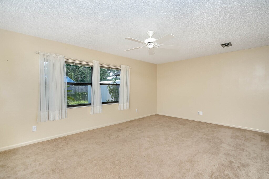 AVAILABLE DECEMBER 15th, 2025 Spacious 3BR/2 Full Bath House w/2 Car Garage, Large Fenced Yard - Pets OK! ** Rent from a private owner, not a company! Please read ALL requirements before contacting.** NO evictions, criminal background or judgments; must have verifiable employment and rental history – we check! Minimum verifiable income is $5500 per month. Background check is $32 per adult (18 and over). Security deposit is $2500, plus the first month’s rent of $2100 to move in. NO SMOKING INSIDE. Tenant pays ALL utilities and maintains the landscape. Close to shopping, Indian River, beaches, boating, great fishing, the Kennedy Space Center, Port Canaveral, Orlando and more! No HOA, so bring your boats, trucks or toys. This concrete block house with a 2 car garage and large fenced yard is ready to be your new home. Spacious interior offers nearly 1600sf of living space, with a flat screen, wall mounted TV in the master bedroom! A large, bright white eat-in kitchen with gas stove plus a separate dining room and living room can accommodate your family comfortably. Convenient one story with tiled kitchen and dining room, screened patio off the kitchen with 2 large swings, large fenced yard with shed. Loads of closets, washer, dryer and sink in large utility room. 2 pets OK with additional $25 per month, per pet, NO DANGEROUS BREEDS PER INSURANCE COMPANY, and NO SMOKING INDOORS!