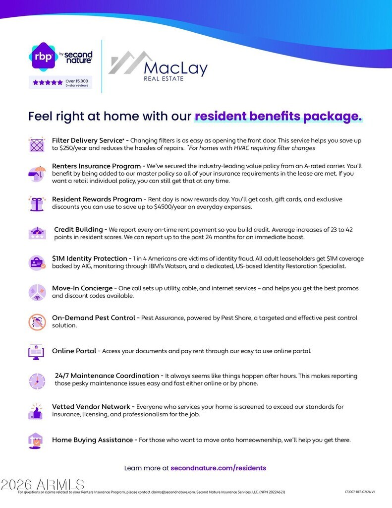 Experience comfortable living in this 2-bedroom,2-bath townhouse in Scottsdale. Located on the first floor and close to downtown Scottsdale,the airport,and ASU. The home features an eat-in kitchen with all appliances included,tile and carpet flooring,a fireplace,and a dual-vanity sink in the master bathroom. Two private patios expand the living space outdoors. Community amenities include a pool and spa. This property offers convenient access and well-maintained interior finishes for an easy move-in. Total monthly payment is $ 1655.00 which includes monthly admin and resident benefit package fee.