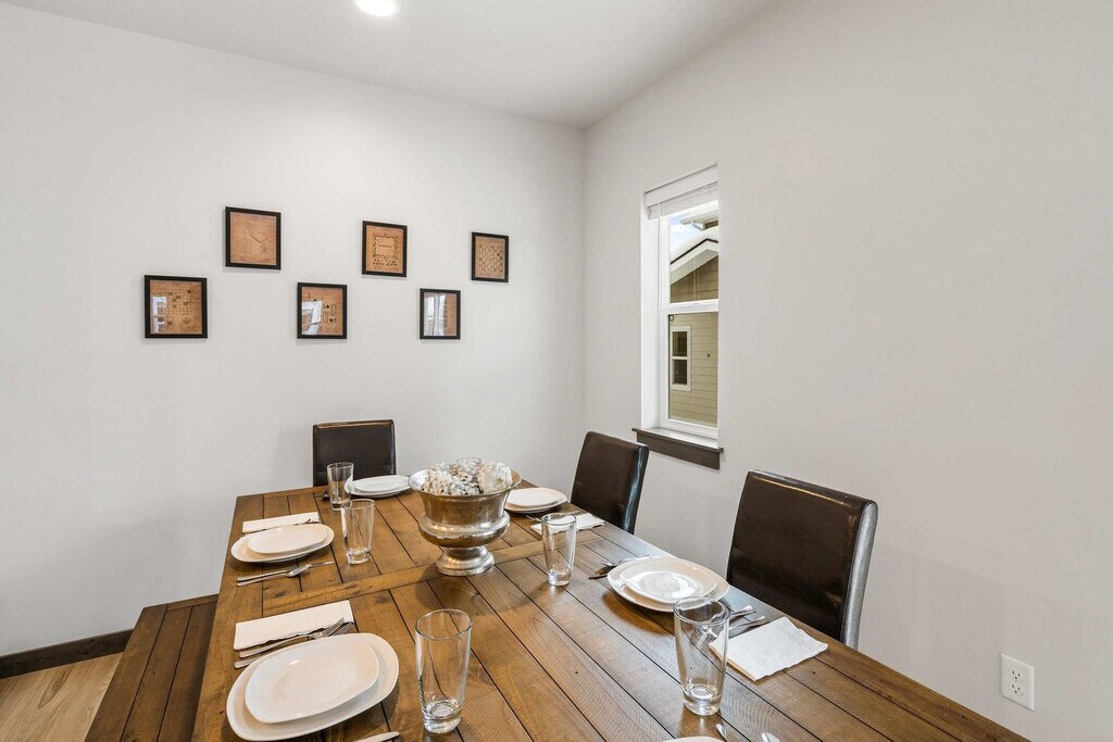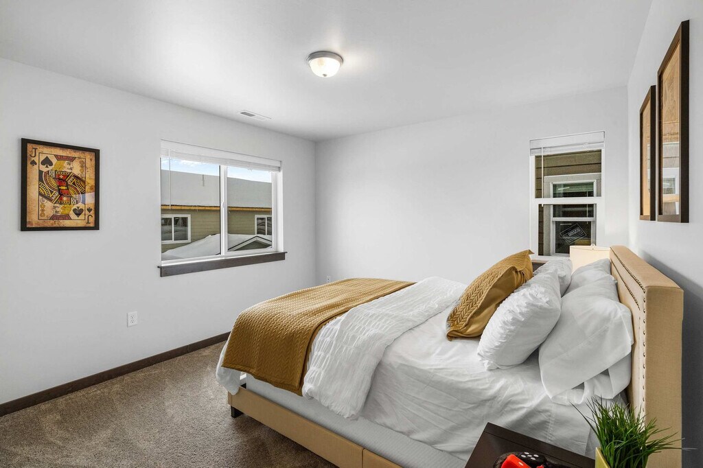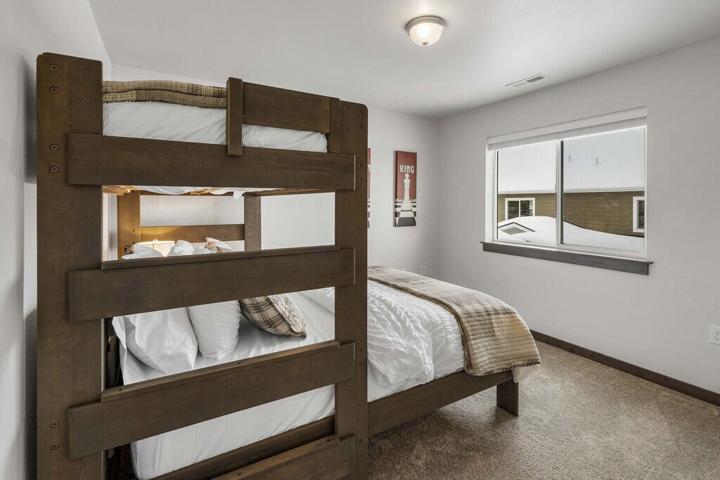 Feel at home in this impeccable townhome, nestled just a few blocks away from downtown Bozeman. This lavish 3-bedroom, 3-bathroom townhome offers 3,000 square feet of living space and can comfortably accommodate up to eight guests. This home features a fully stocked kitchen with top-notch non-stick pots and pans, along with complementary cooking essentials. The light-filled dining room is open to the kitchen and features a table that can seat eight. The living room is adjacent to the dining area and kitchen, featuring a 65” TV, 9 foot shuffleboard, life-size tic tac toe, foosball, ping pong, chess and poker set, and much more. The back deck, which is located off the living room, has a gas grill. A rental car is available. Located minutes from Historic Downtown Bozeman, this home is conveniently located near grocery stores and coffee shops. The Gallatin County fairgrounds are just a few blocks away and offer convenient shuttles to and from Bridger Bowl Ski Area. Bozeman’s Gallatin Field Airport is just a 10-mile drive away, making it easy to get to and from the property. The majestic Yellowstone National Park, located just 80 miles away, offers awe-inspiring natural wonders that are not to be missed. In addition, horseback riding, rafting, and a plethora of attractions can be found in the bustling town of Bozeman. During winter months, the home's proximity to Bridger Bowl Ski Area and Crosscut Cross Country Ski Area - a mere 17-mile drive - make it an ideal choice for winter sports enthusiasts. For skiing and snowboarding enthusiasts, the world-renowned Big Sky resort is located just 45 miles away. Vehicles must be parked in the driveway, violators will be towed at the owner's expense. If additional parking is needed, street parking can be found on Michael Grove (the street directly across Babcock). No smoking is allowed on the property. The top floor hosts the true master suite, which is complete with a king bed and a private workspace. Registration Number: STR23-00057 [SI]