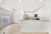 This property boasts three spacious bedrooms and two full bathrooms. The living room, adorned with a cozy fireplace, is bathed in natural light, creating a warm and inviting atmosphere. The home features new appliances, new vinyl flooring throughout, and ceiling fans in every room for your comfort. The entryway is tiled, leading you to a kitchen with newly painted cabinets, adding a fresh and modern touch. This property is located in a gated community, providing an extra layer of security for your peace of mind. The home is equipped with a new A/C unit and recessed lighting throughout, enhancing the overall ambiance. The primary bedroom features a large closet with wardrobe mirrors and an en-suite bathroom with a tub/shower combo. Step outside to your private balcony/patio, a perfect spot for your morning coffee or evening relaxation. As an extra added perk, Trash, Sewer and Tenant Portal Fee are included in rent!