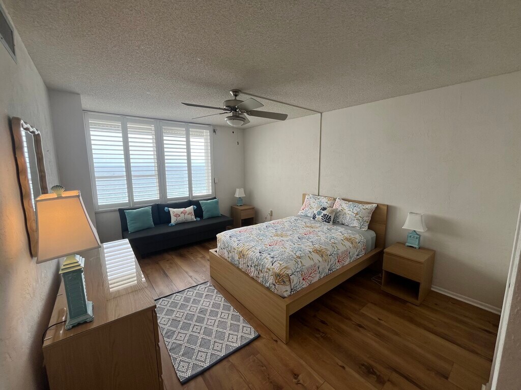 2 month minimum rental. ONLY Available August 2025 - December 18,2025. If you're looking to live life on the beach,this is the place for you! Unit 1805 has been renovated and is a fully furnished split plan 2 bedroom 2 bath condo in the heart of Daytona Beach Shores. The unit offers magnificent ocean and river views from every room. There are several places to shop and dine close by,and let's not forget that you're right on the WORLD'S MOST FAMOUS BEACH! Rent includes water,cable,and up to $100 per month of power. Oceans Five has a very spacious pool deck,exercise room,community clubhouse room,and washers/dryers on every floor. All information deemed accurate,but can not be guaranteed. No pets/smoking.