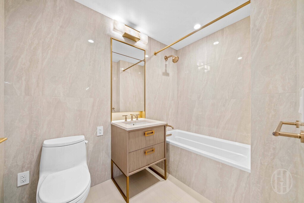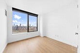 Spectacular, panoramic Manhattan skyline and East River views throughout every room in this high-floor split 2-bedroom, 2-bath residence at Skyline Tower, Queens’ tallest and most prestigious condominium in the heart of Long Island City. The home features distinctive wide-plank European white oak engineered wood flooring throughout, and offers 3 closets inside the unit plus a large private storage unit in the basement. The modern kitchen is ideal for everyday living and entertaining, featuring sand ash veneer cabinetry, Viatra quartz countertops and backsplash, a large island, and a premium Bosch appliance package with an externally vented range hood. Spa-inspired bathrooms offer porcelain tile, custom vanities, frameless glass shower, Kohler Purist fixtures, Kohler Verticyl sinks, Toto Eco Supreme toilets, and a Kohler Underscore soaking tub in the secondary bath. In-unit Bosch washer and dryer included. Additional highlights include Hunter Douglas solar shades in the living room,