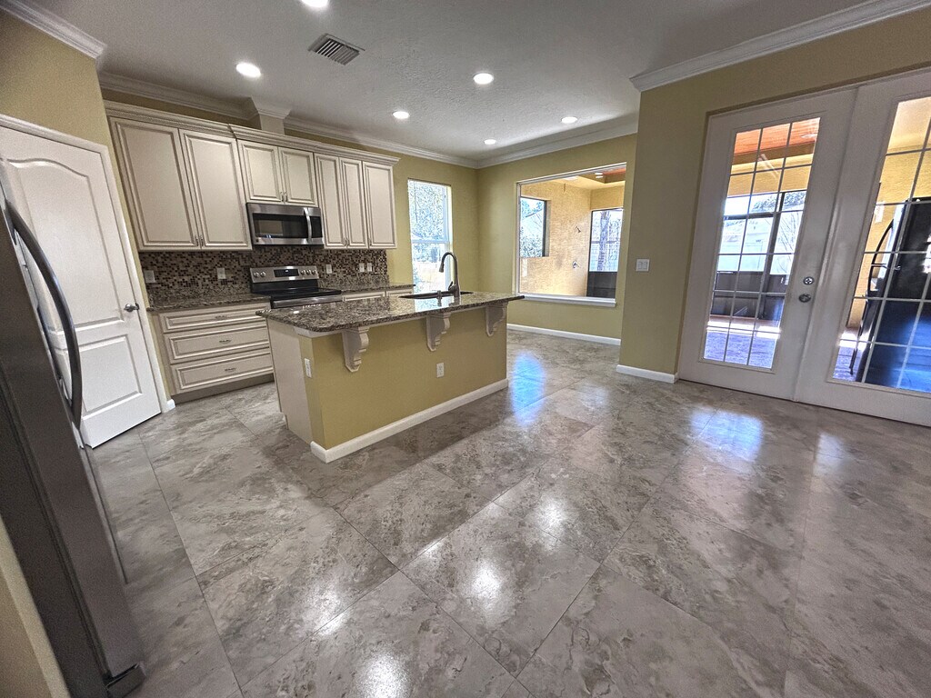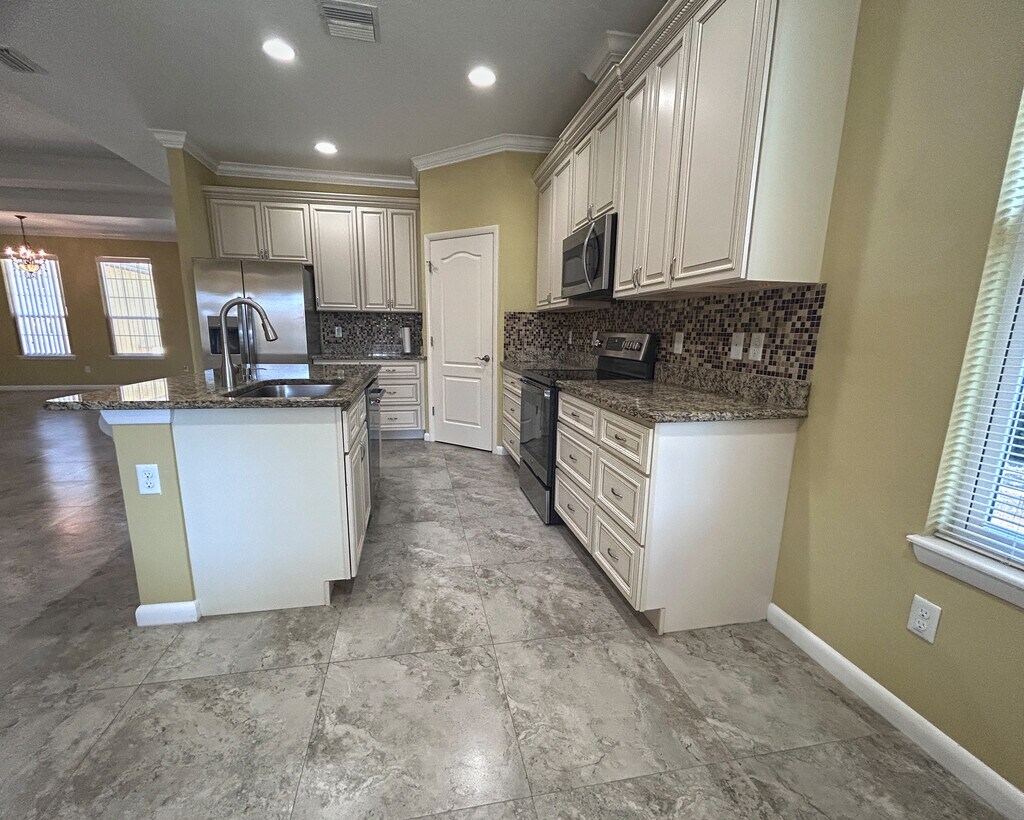 Experience refined Florida living in this custom-built 2017 single-family concrete home located in Palm Coast’s desirable and quiet W Section. Tucked beside a cul-de-sac on an oversized 0.3-acre lot, this property offers privacy, curb appeal, and convenience—just minutes from shopping, schools, and a short 20-minute drive to the beach. A semi-circular driveway, mature trees, a summer kitchen, and beautifully maintained landscaping create a striking first impression, while the partially-fenced yard (from the sides and back) provides privacy and freedom. Enjoy the convenience of a gas station just a three-minute car ride away. Inside, the home offers 1,955 heated square feet (2,966 total) with three bedrooms, two and a half bathrooms, and a dedicated office. Luxury tile, laminate flooring, tiled walk-in showers in the master and guest baths, slow-close kitchen drawers, upscale light fixtures, and an automated front door lock reflect thoughtful design and modern comfort. The kitchen and outdoor lanai are equipped with new appliances, while the two-car garage and spacious outdoor shed ensure ample storage. The house boasts four hose bibs and plenty of electrical outlets for your daily needs, as well as a laundry sink. An enclosed lanai features its own summer kitchen complete with refrigerator, range, and outdoor shower—perfect for entertaining or relaxed evenings at home. A well-operated automated irrigation system keeps the grounds lush with minimal effort. This is a rare opportunity to lease a high-quality, newer construction home with space, privacy, and premium features in one of Palm Coast’s safest and most peaceful neighborhoods.