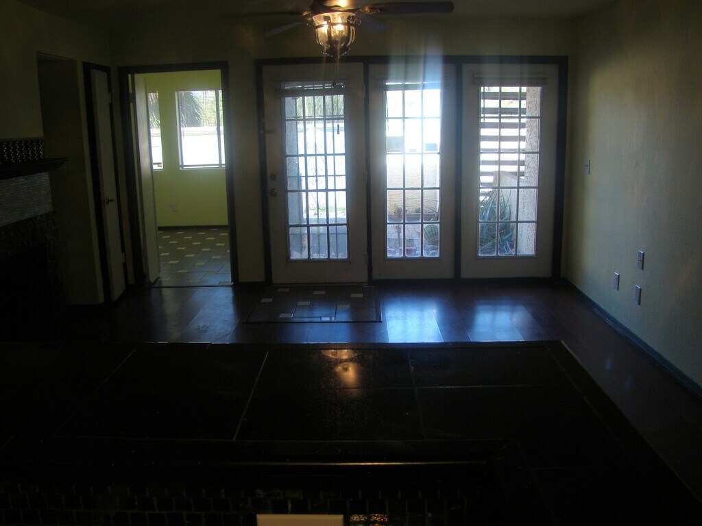 Stunning 2bedroom 1.5bath unit ground level unit with patio. Corner unit with approximately 950 s.f.. Fireplace, Garage, Microwave and all appliances including washer and dryer. Wood floors, granite counter, custom cabinets and newer appliances. Travertine and mosaic glass in shower area, wood bar with granite counter. New ceiling fans. Enclosed Patio. Water, trash, sewage and HOA Fee included. The complex has a beautiful park like courtyard with picnic benches and barbeque grills. Beautiful pool with Jacuzzi. Quiet area, well maintained. With-in walking distance to Hohokam stadium, the park-Winter home of the Oakland A's, public transportation and shopping. Great freeway access to 202 and 60. Near downtown Mesa and minutes from ASU. Security deposit of $1395. Pets may be okay (all pets must be 20 pounds or less as per HOA rules). Can work with no credit or poor credit situations. Call Julian for further details.