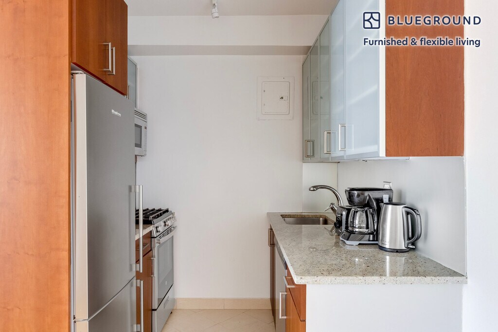 Show up and start living from day one in New York with this beautiful one bedroom Blueground apartment. You’ll love coming home to this thoughtfully furnished, beautifully designed, and fully equipped Murray Hill home. (ID #NYC2083) The advertised rate of $4,650/month is the lowest available price, based on a 1 month(s) and 25 day(s) stay with a move-in date of November 23, 2025. If you’re looking for a 1-year stay, the rate is $6,340/month. Rates vary depending on the duration of stay, season, and other parameters. For exact pricing and additional pricing components, please visit our website and enter your desired move-in and move-out dates. The rate is applicable when billed upfront; it can be higher if billed in multiple payments. Brokers are welcome to reach out. Were you looking for an unfurnished lease? Try Blueground instead and upgrade from unfurnished to furnished living: - Furnished at rates comparable to unfurnished - No setup or furniture costs - save thousands - Move-in ready - save time, just bring your suitcase Designed with you in mind As with any Blueground apartment, you’ll find a thoughtfully designed space complete with beautiful furniture and a fully equipped kitchen in this one bedroom property. And, thanks to our superior quality mattresses, luxury linens, and towels, you can relax knowing you’ll always feel comfortably at home. When you’re ready for some fun, you can take in the New York vibes or bring the entertainment to you with the premium wireless speaker or smart TV. Sleeping arrangements Queen Bed, 63in/160cm Amenities Building amenities unique to this one bedroom apartment include an on-site: - Doorman - Dryer in building - Elevator - Washing machine in building - Lounge - Pets allowed - Rooftop Arrival and ongoing support The entire apartment is yours to enjoy! Throughout your stay, you’ll have access to our Client Experience team through the Blueground App. You can schedule additional cleanings, submit maintenance requests, and view our neighborhood recommendations with just a few taps. We’ll share all details upon confirmation of your stay. Ideally Located This furnished apartment is located in Murray Hill, a lively Midtown neighborhood. The active nightlife scene makes it increasingly ideal for youngsters and recent graduates. Simultaneously, families are relocating here as there are many good schools in close proximity. Murray Hill offers various destinations for culture-lovers. Namely, the New York Public Library and Bryant Park draw residents in from the rest of the city. Grand Central Station is only 5 minutes from Murray Hill by subway. Other things to note Building amenities may have an extra cost. This Blueground apartment has flexible lease options, allowing you to book it for one month, a year, or more. Pets are welcome, though weight limits and breed restrictions apply and may incur fees. Brokes CYOF. We take great pride in ensuring every photo displayed is shot in our own units with our actual furnishings. That said, we regularly refresh our decor and furniture arrangement, which may differ from what’s pictured. [SI]