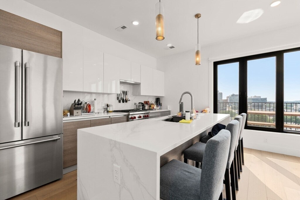 30 Penn is a luxury building completed in 2023. This spacious 2 Bed,2 Bath Penthouse has a preferred layout,stunning outdoor space and many upgrades. The west-facing private terrace extends the living area and provides beautiful sunset views of Boston and Cambridge. The open kitchen area features Thermador and Wolf appliances,a large main island with waterfall quartz countertops,and wine fridge. The primary bedroom includes a walk-in closet,ensuite shower,dual vanity sinks,and backlit LED mirrors. Enjoy European oak floors throughout,recessed lighting,in-unit W/D,NEST,integrated Sonos audio,high-efficiency central heat/AC,and an on-demand hot water tank. Amenities include garage parking,a fitness area,bike storage,pet spa,and residents lounge. Close to Boston Landing,Allston Yards,local restaurants,shops,the Charles River,Harvard,Boston University,and the MBTA train station. Move-in fee only first month and security. Delivered furnished or unfurnished. MLS# 73487055