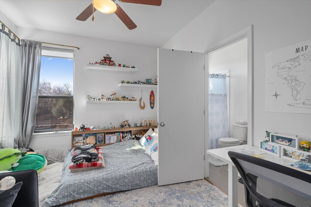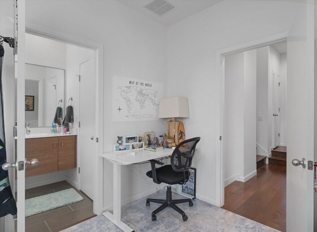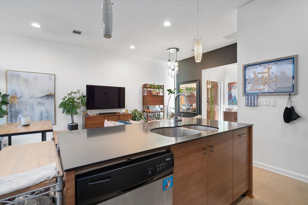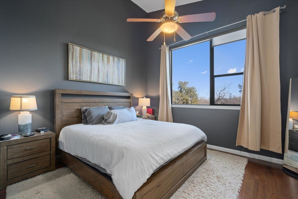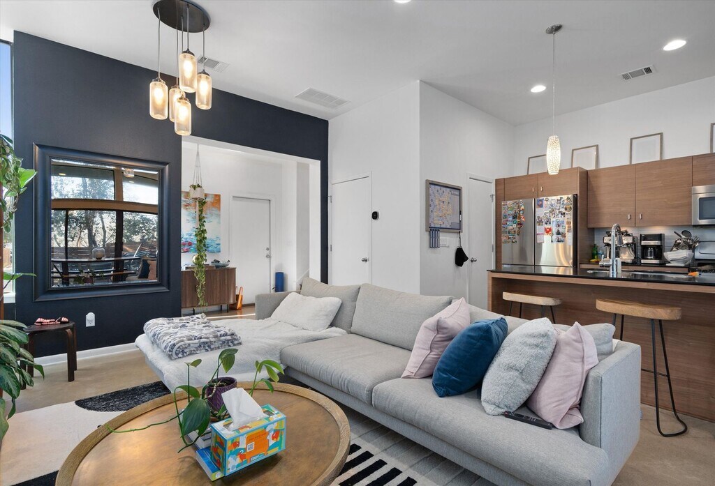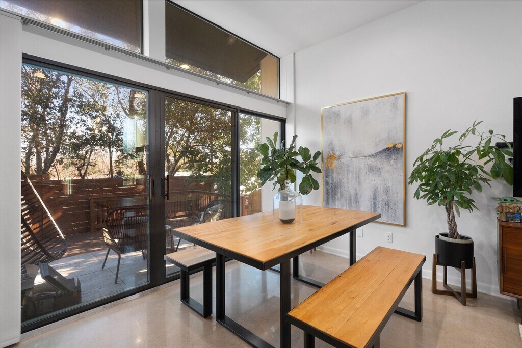 Offering the best of Austin's lifestyle, 300 Ashley Dawn is a freestanding home with its own garage situated on a spacious private corner lot in a gated community. Steps away from Cosmic Coffee and Beer, Plaza Colombia, and Crux Climbing Gym. Minutes to S. Congress and S. 1st St. restaurants and shopping. 15 mins to the Airport. The main level living room and kitchen with concrete floors are separated from a serene back yard by beautiful dual sliding glass doors. The tiled patio, luxury composite deck, and artificial turf are perfect, low-maintenance spaces for outdoor entertaining or peaceful dinners. Both of the primary and secondary bedrooms have en-suite full baths. Third-floor "treehouse" living area has breathtaking downtown views and abundant natural light. Rich hardwood floors, high ceilings, modern finishes, and large windows throughout the home.