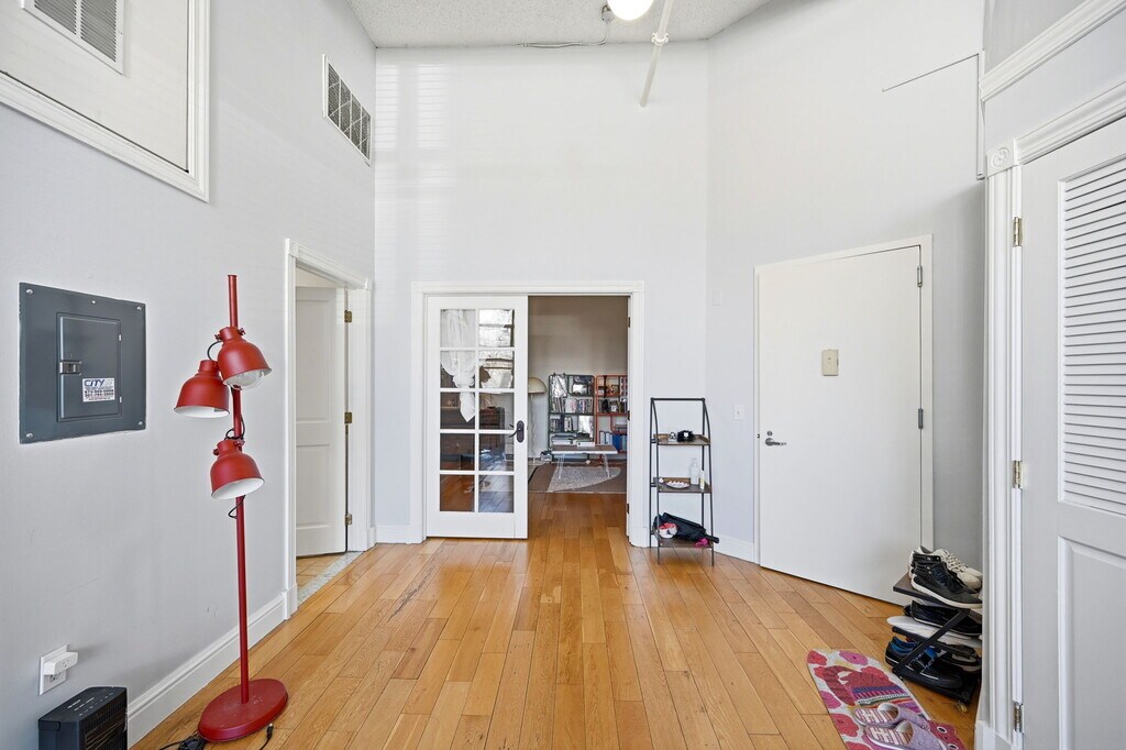 FOUNDRY LOFTS at Liberty State Park Jersey City: Oversized 1-bedroom loft apartment with 845 sq.ft. and 1-car parking included. Featuring 13' tall ceilings throughout, tons of closet space, wall of windows (9' tall). Central heating & A/C. full-sized washer & dryer in apartment. Stainless steel KitchenAid appliances include 36" bottom freezer fridge, dishwasher, microwave. Monthly rent includes 1 car parking space, as well as gym access. Minimum 1-year lease term. Gas & electric are not included. Xfinity & Verizon Fios available.
