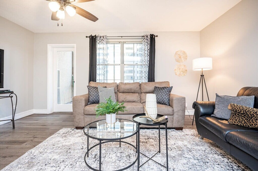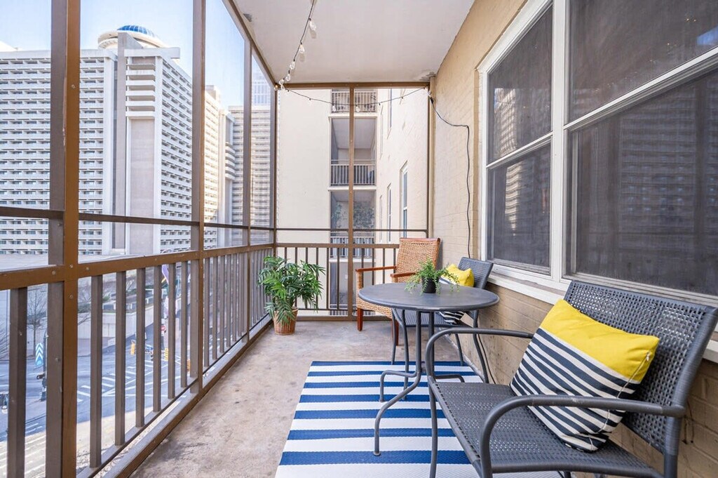 This exceptional 1-bedroom, 1-bath condo is located in Peachtree Towers in the heart of Downtown Atlanta, offering spectacular views of Downtown and Midtown from its private balcony. Feel at home with a fully functional kitchen featuring an electric stove and granite countertops. The building is secured 24 hours with a doorman, and laundry room access is available in the basement. Wi-Fi is included, and all linens, towels, and toiletries are provided. The MARTA station is conveniently just two blocks away, providing quick access to the city and airport. The condo boasts a cozy bedroom with ample closet space and an inviting living area with stunning city views, perfect for solo travelers or couples. The modern design includes granite countertops and updated appliances, creating a bright and airy atmosphere with natural light. The fully equipped kitchen is ideal for home-cooked meals, and there are convenient dining options nearby for diverse culinary experiences. Public parking is available below the building, but there is no assigned parking space for the unit. Please contact if you need a car park. Located in a prime area, this condo is within walking distance to major attractions such as the GWCC, Phillips Arena, Georgia Dome, America's MART, CNN Center, World of Coke, and the Aquarium. The building is centrally located on Peachtree Street, ensuring a safe and well-traveled environment with City Ambassadors available for assistance. The nearby MARTA station offers a convenient and economical way to explore the city, with a return fare from the airport costing just $5 and taking less than 30 minutes. The self check-in/check-out process is easy and available 24/7. Bring your ID to check in with the concierge. Being located downtown, the building often hosts special events, and prices may change for these events. This is a residential building, so please keep noise to a minimum. If rules are violated, you may be asked to leave the building. Quiet hours are between 21:00 and 9:00. The space is for residential use only and not for social gatherings or parties. Only registered guests are allowed in the unit. No pets are allowed at any time, with a minimum fine of $500 for violations. If you are locked out and building staff assists you, there is a minimum fee of $65. Behavior resulting in a false fire alarm incurs a minimum fine of $150. No eating, beverages, or smoking are allowed in the hallways or other common areas. Do not block elevator doors or hold them open, as it will shut down the elevator. Pizza boxes or large items should not be put into the hallway trash chutes, with a minimum fine of $50 for violations. Do not let people follow you into the building; only residents and guests with keys should enter. No noise should be heard from your unit at any time. Bicycles are not allowed in the elevators, but a key to the Bicycle Room can be obtained from the Management Office. Please leave the condo tidy by emptying the trash, starting the dishwasher, and placing all dirty linens in the bathroom before departure. Fresh linens and a thoroughly cleaned space are provided for every tenant, but there is no maid service during your stay. Laundry facilities are available inside the building, and a $10.00 laundry card must be purchased from the Concierge. [SI]