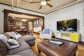This 2 bedroom, 1 bathroom FULLY FURNISHED condo in this remarkable five unit brownstone building contains exquisite woodwork throughout including stunning hardwood floors, and an immaculate built-in dining hutch. The main bedroom has a large closet, a extremely comfortable king side bed, a ceiling fan, and wrap around windows. The second bedroom features a bunk bed with a twin over full mattress. There is a living room and separate sitting room with a desk as well as a formal dining area. It also features an enormous yard & it's just 1 block from the shops & high-end restaurants in Linden Hills. ALL UTILITIES ARE INCLUDED - INCLUDING HIGH-SPEED FIBER INTERNET Plus Live TV, Netflix, & Amazon Prime! Each unit contains furniture, artwork, bedding, towels, etc. as well as wonderful kitchens that are appointed with all the housewares, dishes, pots/pans, a coffee maker, toaster, blender, etc. plus a large refrigerator, oven, microwave, dishwasher, beautiful cabinetry, a coffee / drin...