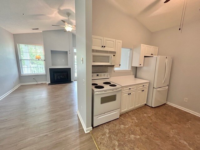 Spacious 3 Bedroom, 2 Bathroom condo located on the 3rd floor of Windemere Condominiums in Burlington. Living room features LVP flooring, cathedral ceilings, gas log fireplace with patio door that leads to a private balcony with wooded views and a small storage room. Kitchen includes ample cabinet space, stove, refrigerator, dishwasher and built-in microwave. Dining area with pantry. Laundry room with storage space and electric washer/dryer hookup. Large bathrooms with modern updates and fixtures. Primary bedroom has LVP flooring and a walk-in-closet. Condominium complex does have elevators for tenant use. Gash heat, central A/C. Water & trash included in rent. NO INDOOR SMOKING! Pets Negotiable.
