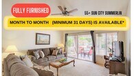 > AVAILABLE 10/18/25 < Fully Furnished "MINIMUM 31 Days"/SHORT TERMs. SFR. 55+ Sun City Summerlin (up to 2 ppl). This promo. rate is good till the end of 2025. Ask for Price & Next Availability in 2026. Fast & Easy Process: Less Paperwork: Show D/L, Sign Lease, Pay & Move in. Bring your suitcase & Enjoy Whole House. 2/2/2 w/golf cart parking in garage. "INCLUDED" All Utilities of Water, 5G WI-FI Internet, Sewer, Disposal Svc & Landscaping. "ALSO INCLUDED" Gas & Electrics combined up to $150 per mo (it should cover depending on each lifestyle. No Worry & Be Comfortable. If the usage is over, just pay difference). Flat screen TV @ Living Rm. w/Roku Internet Streaming (no satellite/cable). Pots/Pans/Dishes/Towels/Linens/Etc. Queen Size @ Master & Full size @ 2nd Bed. Washer & Dryer. "Strictly" No pets/No smoking allowed. Pre-paid rent(s)+Refundable Deposits (See agent remarks) +$99 Admin Fee non-refundable. Discl:Owner-Licensee may offer "Lease to Purchase" w/convey furnishings/furniture.