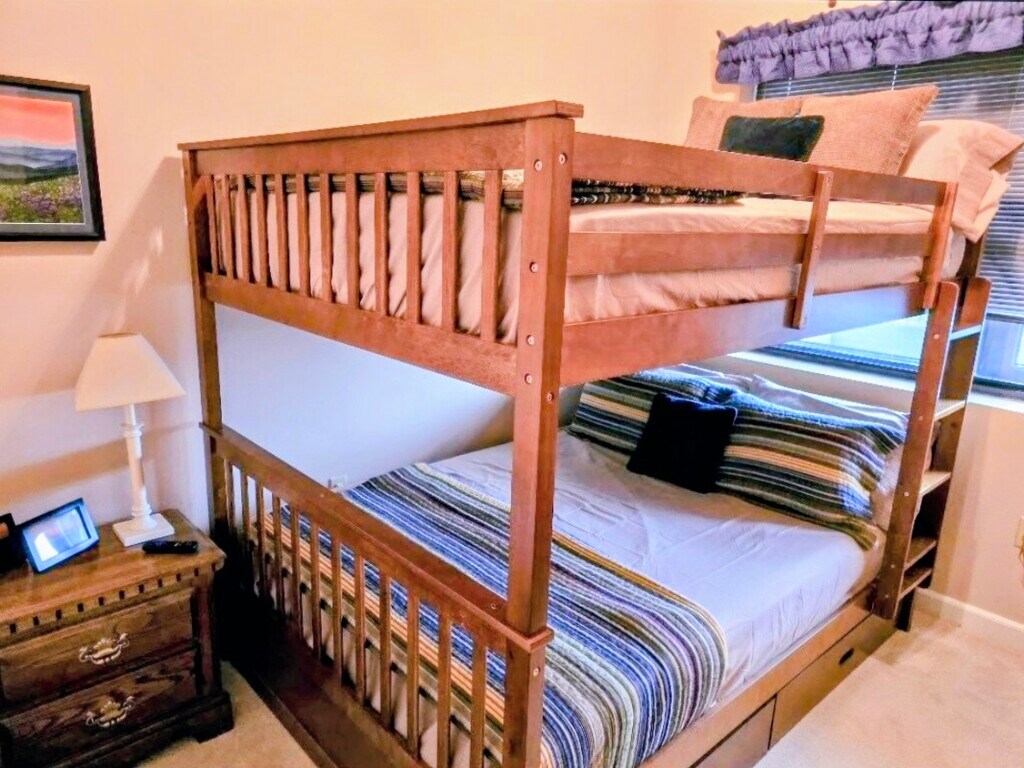 Looking for a fun getaway to escape the heat in the summer and enjoy snowfall in the winter? This is it! Experience top-of-the-mountain living in this two bedroom, two bathroom condominium with high 10 foot ceilings. The balcony offers beautiful picturesque, long range views of the Blue Ridge Mountains and Sugar Mountain ski trails. Peacefully watch the amazing sunsets unfold layer by layer of breathtaking colors on the balcony. And, talk about being festive and patriotic, July 4th fireworks are right in front of the balcony. Looking to relax? If you’re like me, there’s nothing better after a day of hiking, skiing, shopping than to kick your feet up on a recliner. It provides significant benefits to your body by improving blood circulation, and this condo boasts not one, but four recliners for your comfort! Sugar Top is a gated resort that offers a 24/7 front desk host, security and a guard at the gate. This condo is also available for short or long term weekly/monthly stays. Nearby: Food Lion, Subway, McDonalds, China House Restaurant, Fred and Larry’s Coffee, High Country Pie (delicious homemade meat pies) and Bella’s Italian Restaurant are all within a ten minute drive. Ask for a map at the front desk. Sugar Mountain Ski Slopes is less than one mile Sugar Mountain Golf is less than one mile Alpine Coaster is two miles Banner Elk is six miles Grandfather Mountain is nine miles Boone is sixteen miles Blowing Rock is eighteen miles lists activities at these places in addition to a list of restaurants, hiking trails, golf courses, festivals, Wednesday Summer Concerts, and waterfalls. Also, a very detailed list of what to look for on the scenic drive of the Blue Ridge Parkway. The space The master bedroom features a queen sized bed and the guest bedroom has two full sized bunk beds. There are lots of board games in the guest bedroom. The baseboard central heat and ceiling fans in each bedroom and family room ensure you’ll be comfortable no matter what time of year you visit. Enjoy watching your favorite shows and movies from bed on one of our three TVs. In the family room you are able to log in to any of the apps you have at home (guests must provide their login information). The desk has a charging station with an assortment of charging cables. The drawer below the family room television has plenty of books to choose from. Feel free to keep the book if you have not finished reading it by the end of your stay. We provide a Keurig coffee maker, regular coffee maker, coffee pods, sugar, and creamer. We also have a teapot. There is a starter supply of paper towels, toilet paper, dish detergent, trash bags, salt/pepper shakers, and blow dryers in each bathroom. I like to keep my condo attractive and clean for all my guests. You will be responsible for any incidental fees and damage to the rental property caused by you or your guests during your stay. Guest Access You must be at least 25 years old to book and stay at this condo, and children must be 8+ years to stay. The names and ages of all guests must be provided, and drivers licenses will be requested at check in. Check in is at 4pm. Guests will stop and check in at the guard gate, park up at the entrance of Sugar Top (there are five spots available), unpack your belongings, then park and ride the shuttle back to the entrance. You may ask at the front desk if there is available parking in the owners lot (sometimes there is during slower times). Check in at the front desk giving my name, Shirley Ann Unterbrink, Unit #2123. There are luggage carts, shopping carts, and a wheel chair at the entrance. To request the shuttle you can call the front desk at or from the landline in the kitchen dial 0. Guests will have access to the entire condo with the exception of the locked closet door in the master bedroom and two storage rooms with locks. This condominium complex has many outside video recording cameras that actively record video and audio. Amenities Sugar Top is a gated resort that offers a 24/7 front desk host, security, and a guard at the gate. Also, an indoor heated pool, two indoor hot tubs, wet/dry sauna, and gym with locker rooms and showers, quiet reading area, large outdoor sunset deck, picnic area with iron grills, and wheelchair accessibility. There is also a concession stand in the lobby. Other things to note For all skiers, there is a place to keep your skis and ski boots, they are not allowed in condos per homeowner’s rules. Ask the front desk for the storage location. In snowy seasons you WILL need an all-wheel or 4-wheel drive vehicle. The weather on Sugar Mountain can change in an instant, and we may not be able to accommodate adding extra days to your stay in inclement weather. Please ensure your vehicle is equipped properly for mountain driving. Winter weather can occur here from November to April. In warmer seasons please watch carefully for wildlife while driving. There are foxes, deer and lots of fawns in late spring/early summer. We do get heavy fog that will usually lift when the sun comes out. Due to the mile-high elevation, Sugar Top has no air conditioning. There are three ceiling fans, one in each bedroom and one in the family room. July temps average 55-70 degrees. There is a laundry room just a few steps to the left when exiting the condo. There is a coin machine and laundry supplies in the lobby at the concession stand.