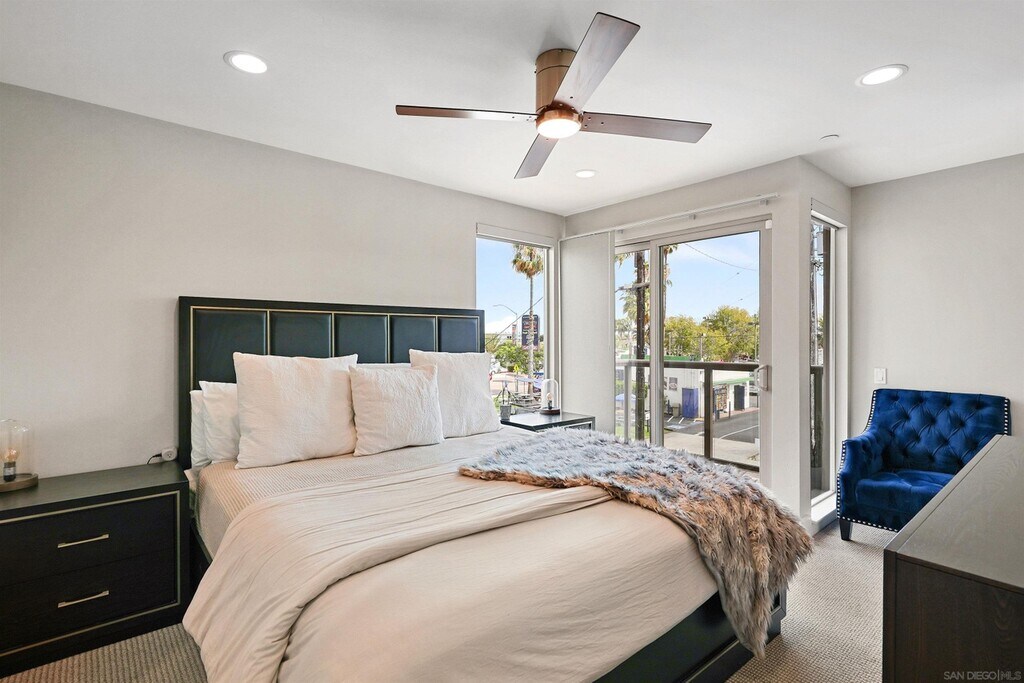 Welcome to this beautifully crafted fully furnished townhome that offers the perfect blend of sophistication and modern comfort. This corner unit boasts a contemporary showroom-style design, filled with abundant natural light and breathtaking panoramic views of the San Diego Bay, Downtown Skyline, and the picturesque Wooded Hills of Point Loma. Ideal for someone seeking a turn-key opportunity, this property is equipped with top-tier features including Jenn-air stainless steel appliances, quartz countertops, luxury vinyl plank flooring, and an oversized farm sink. Enjoy outdoor living on the rooftop deck complete with a built-in BBQ and fridge, or relax indoors with amenities such as a Juliet balcony, expansive walk-in shower, and contemporary carpet. The home also includes Kohler plumbing fixtures, a tankless water heater, high-pressure laminate designer cabinetry, and central heat & AC. For convenience, two underground side-by-side parking spots come with an added EV charger and storage space. Located close to Shelter Island, the beach/bay, and the village, this fully furnished townhome offers easy access to all the vibrant attractions San Diego has to offer, making it move-in ready for its next fortunate occupants.