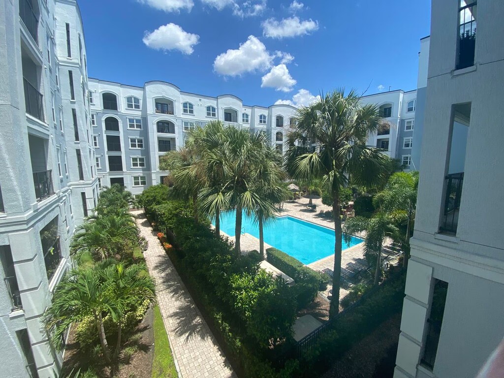 -PENDING- This 2 bedroom, 2 bath condo features a split bedroom floor plan with newer laminate and ceramic tile floors, updated kitchen with rich maple tone cabinets, granite countertops, stainless steel appliances, and farm sink. Living room/dining room combination with breakfast bar. Primary bedroom en suite with newer double sink vanity and generous walk-in closet. 2nd bedroom en suite with dual closet, updated bath has a tile walk in shower with glass sliding barn doors, newer vanity and linen closet. Added features are crowning moldings, newer HVAC, newer windows, 2 inch blinds, updated lighting, light neutral paint colors, and a full balcony with tree lined views for tranquil evenings. Building features a gated community with a resort style pool, fitness center, drive up mailbox, newer exterior paint and newer landscaping. Conveniently located in downtown, Dr. Phillips Performing Arts Center, Lake Eola, Church St, and so much more. Rent includes 2 assigned parking spaces in the garage, water, sewer and trash. Association approval is required. HOA does not permit dogs. Available to move in 2/1/26 SHOWINGS BY APPOINTMENT ONLY! Call John Abbott at to schedule your private tour