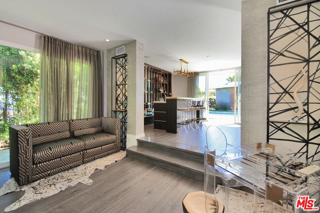 Nestled in one of Brentwood's most sought-after neighborhoods, this completely remodeled contemporary masterpiece blends luxurious design with effortless indoor-outdoor living. From the stunning grand formal entry, you're greeted with breathtaking sight lines to the sparkling pool and an abundance of natural light pouring through expansive glass doors and windows. The open floor plan boasts 4 spacious bedrooms and 4 1/2 spa-like bathrooms, including a serene primary suite with a generous walk-in closet. The chef's kitchen is a showpiece, featuring a massive center island, high-end stainless steel appliances, custom built-ins, and a skylight that floods the space with sunlight while framing views of the lush backyard. Perfect for entertaining, the private custom bar overlooks the pool, while multiple seating areas invite al fresco dining with views of the city lights and mountains. The resort-style backyard offers a sanctuary-like atmosphere, complete with seamless indoor-outdoor flow, manicured greenery, and an inviting pool deck. Additional highlights include soaring ceilings, recessed lighting, designer chandeliers, two elegant fireplaces, and meticulous custom finishes throughout. Every element of this home has been crafted to create a tranquil escape from the city's hustle and bustle. An ideal blend of sophistication and comfort in the heart of Brentwood, located in the Roscomare school district and adjacent to some of the most prestigious private schools in Los Angeles. Home can also be leased fully or partially furnished at a premium. Call to inquire. MLS# 25576993